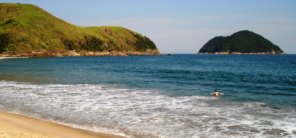 Praia fica a 10 Km do Centro e tem cachoeira e muita cultura caiçara