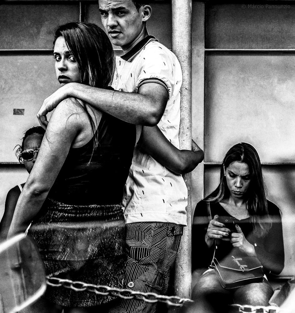 A coluna Foto em Foco por Márcio Pannunzio desta semana traz fotos tiradas na balsa. São flagrantes rápidos, capturando as pessoas distraídas – na maior parte deles. Isso porque três da série registraram o olhar dos fotografados encarando a câmera e essa ação deu um novo brilho a essas fotos. Um diferencial em relação às colunas anteriores é o fato desta ser toda em preto e branco. Já não se veem mais imagens em preto e branco nos jornais, o que é triste. A supressão da cor nos auxilia a perceber melhor o desenho das cenas fotografadas, o seu contraste, o seu enquadramento, a textura de cada matéria, o caminho da luz.