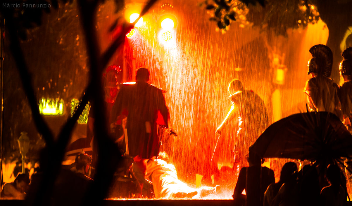 As fotos da coluna desta semana foram tirada durante a encenação da Paixão de Cristo, na Praça do Coreto, em São Sebastião, no último sábado (25), pelo artista Márcio Pannunzio. Mesmo com a forte chuva que ‘caiu’ durante o evento, os artistas e o público não se intimidaram e, com fé, permaneceram até o final. Foi um espetáculo muito bonito, com boa iluminação cênica e palcos interligados montados em vários locais da praça.