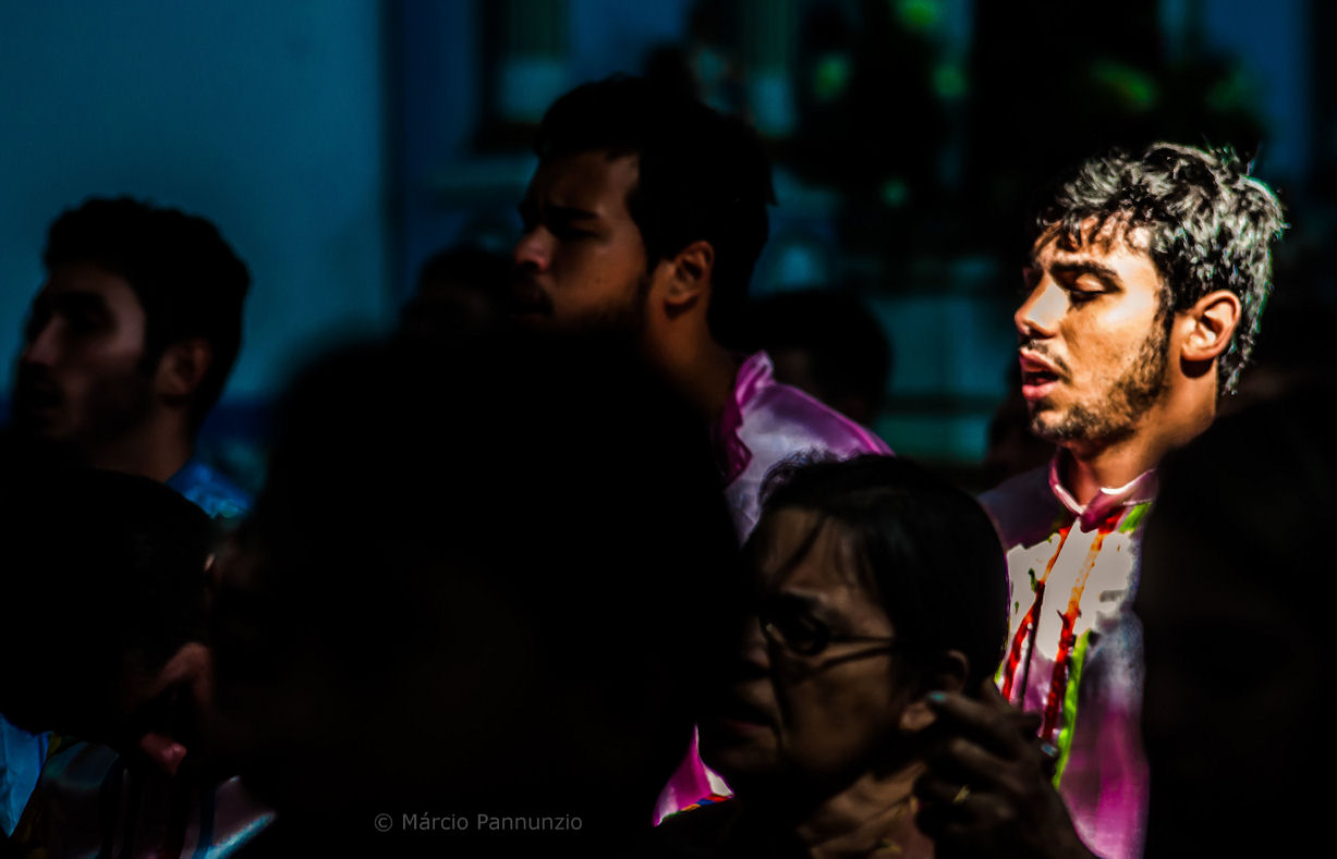 A quarta coluna que retrata os festejos da Congada de Ilhabela na Festa de São Benedito traz a Missa Congo que ocorreu no domingo, dia 15. A Igreja Matriz ficou repleta de congueiros, imprimindo um colorido especial aos fiéis que enchiam o local. Foi um culto vibrante. A luz dourada que penetrava no ambiente envolvia alguns congueiros, destacando-os dos demais e então nos encantávamos com a tão bela devoção deles à Congada e a São Benedito.