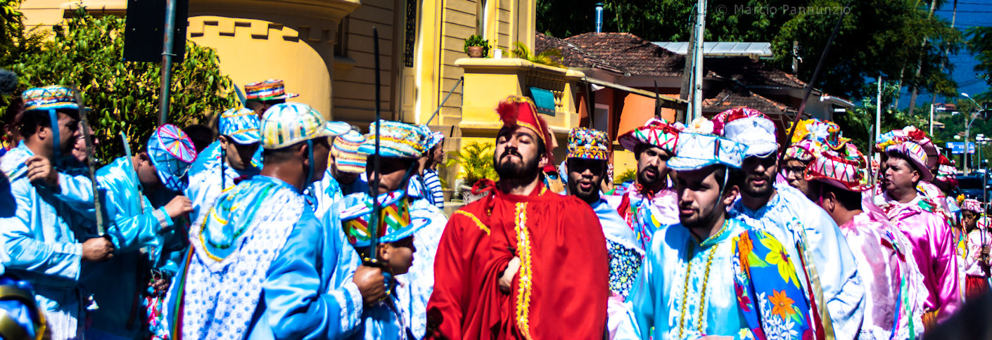 Esta Foco em Foco conclui a série sobre a Congada de Ilhabela na Festa de São Benedito. Fotografei no domingo, após a missa. No dia anterior, fiquei apreensivo, achando que viria chuva. Mas não; foi uma radiante, manhã de sonho para fotografar com a melhor das luzes. Havia outros fotógrafos e trocando figurinha com um deles – um caiçara, fiquei sabendo de uma história inusitada. Ele me disse que nunca chove durante as congadas. Reza a lenda que se o dia é chuvoso, o padre coloca a imagem de São Benedito na porta da igreja e o sol volta.