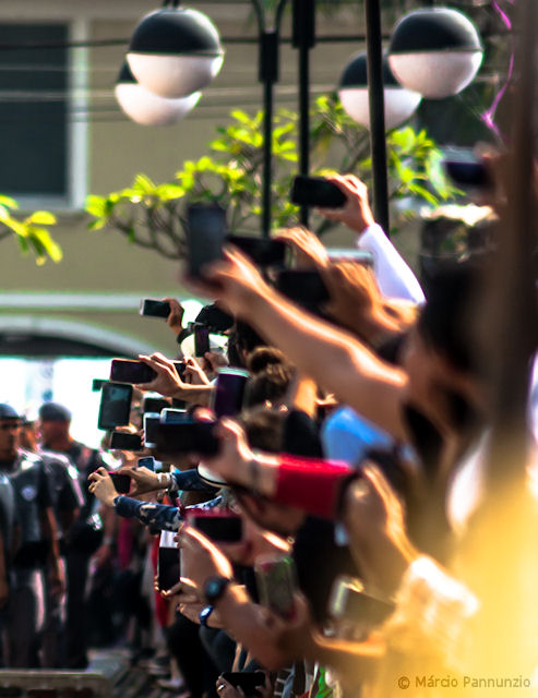 Havia muita gente, mas muita gente mesmo à sua espera. Não foi nada fácil fotografar disputando espaço com tanta câmera, celular e tablet.