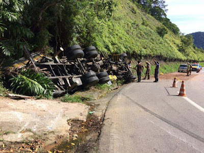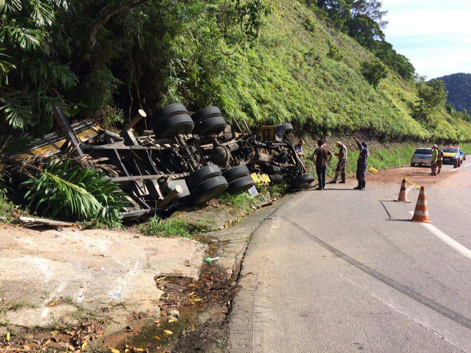 Um caminhão que transportava cabos de energia elétrica tombou e bateu fortemente contra um barranco na serra de Boiçucança, região Sul de São Sebastião, na tarde desta quinta-feira (8), deixando o motorista e um passageiros mortos.