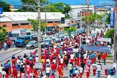 Trabalhadores em passeata após fechamento da Schahin (Fotos: Divulgação) |