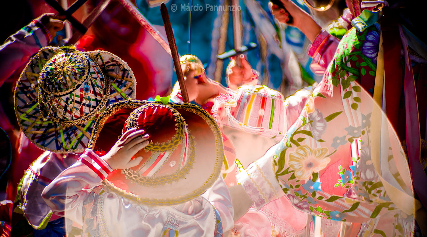 A Semana da Cultura Caiçara é também a semana da Congada da Festa de São Benedito. É a terceira vez que a coluna retrata a Congada. Fotografar o evento sempre rende foto bacana; os dias de maio são de uma luminosidade especial, com céus azul royal e mesmo as horas mais quentes, não ofuscam a delicadeza da luz solar que ilumina o mundo com brandura.