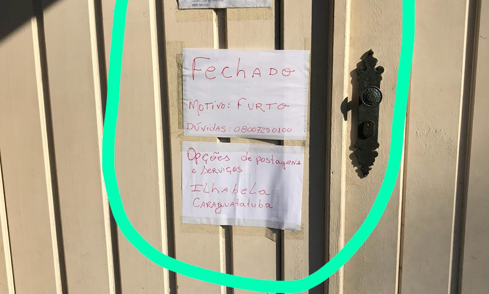 Moradores que foram à agência dos Correios no Centro de São Sebastião foram surpreendidos com o seu fechamento, na manhã desta terça-feira (3). Na porta encontraram um aviso: “Fechado. Motivo: Furto”.