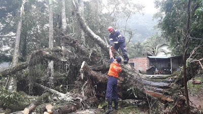 Uma árvore de grande porte, de aproximadamente 15 metros, caiu sobre uma casa de veraneio localizada na Rua da Barra, em Maresias, Costa Sul de São Sebastião. O registrou foi na manhã desta segunda-feira (6), quando chovia e ventava na região. Não houve feridos.