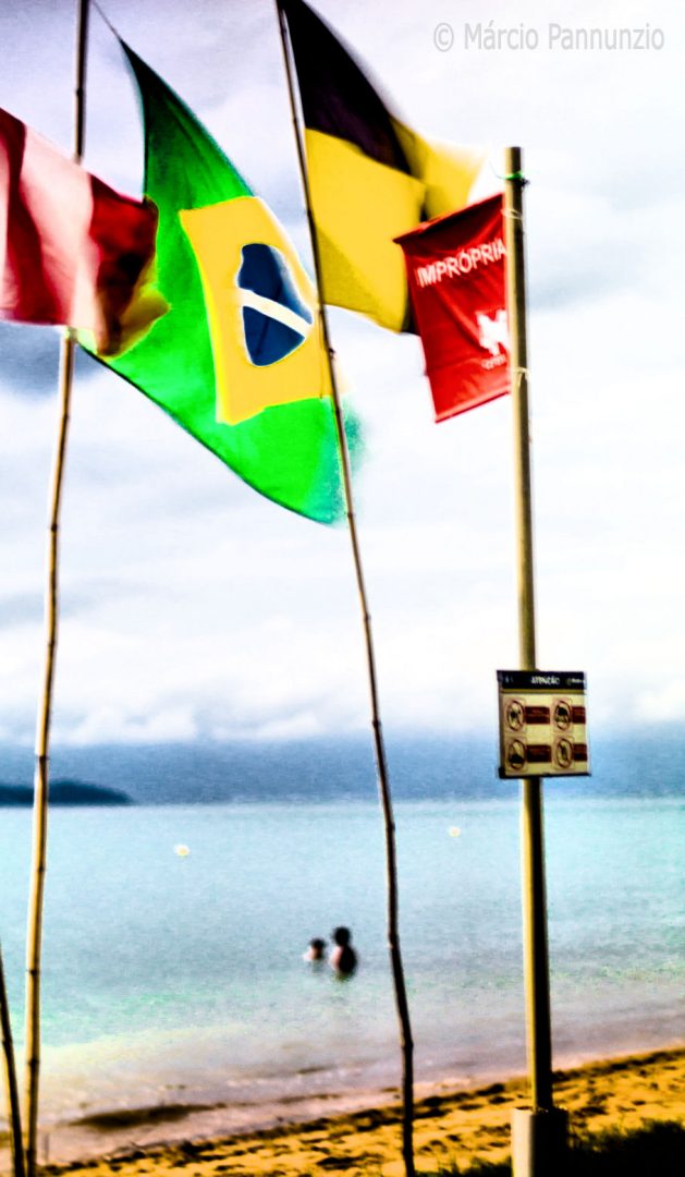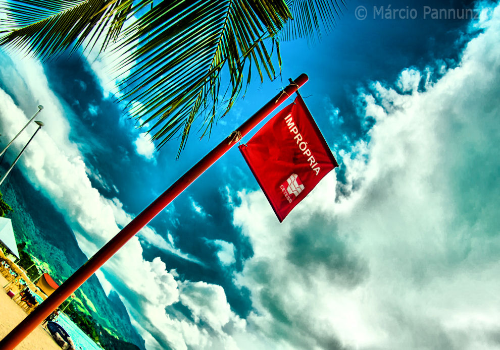 Dezenove praias com a bandeira vermelha da CETESB; ou seja, todas, todas as praias monitoradas pela companhia classificadas como inadequadas para banho. Dezenove praias impróprias, muito embora os turistas e a gente da Ilha que nelas se banhava pouco se importasse com o alerta sanguíneo encimado no mastro no meio de cada uma dessas praias poluídas.