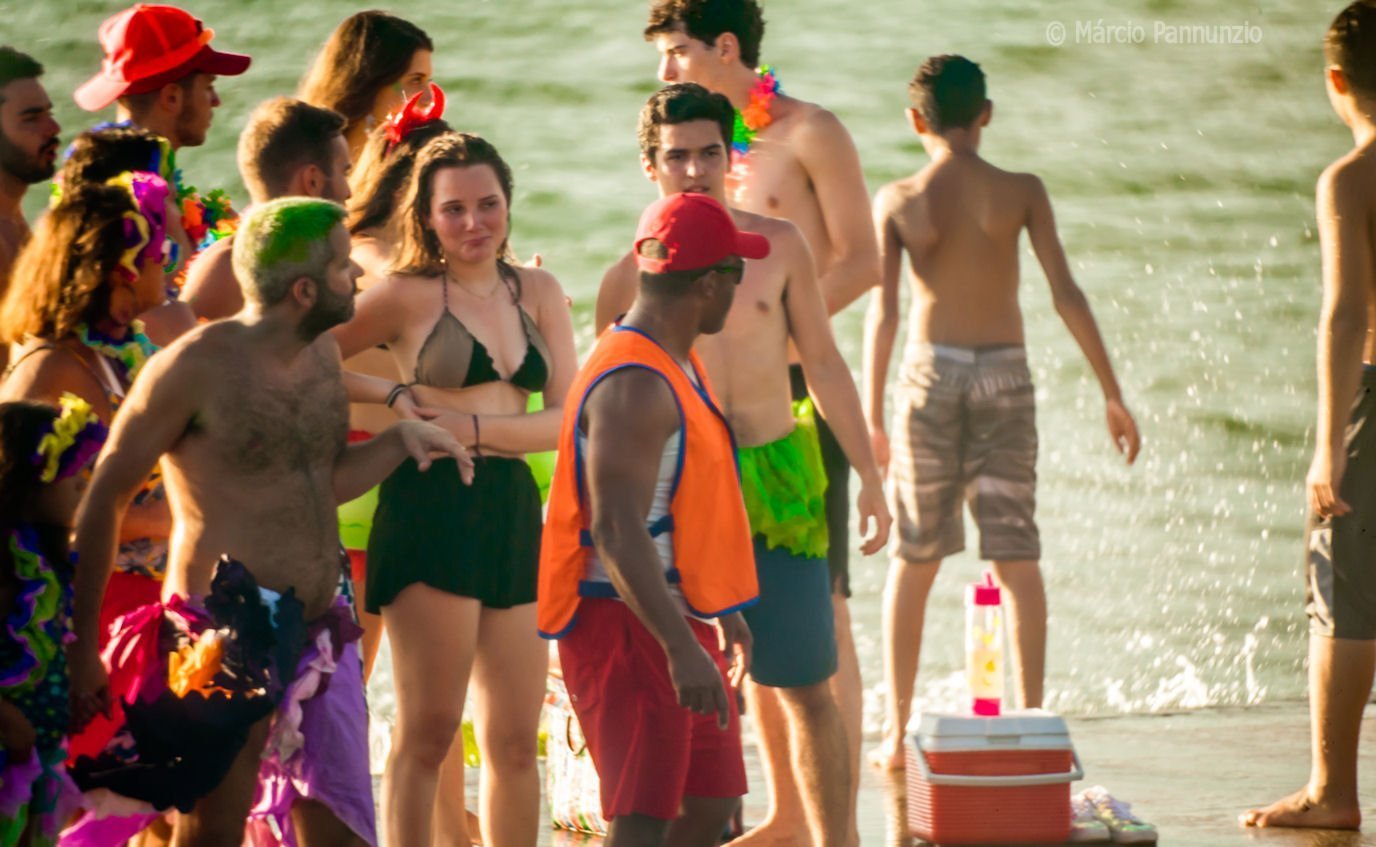 Felizmente, isso não se pode dizer do Carnaval em Ilhabela. Ele tem muita da naturalidade, da alegria sem afetação, do real prazer de se apropriar da rua e confraternizar com gente de todas as idades, gêneros, cores, credos e bolsos. E o seu ponto alto é o Banho da Doroteia. Nele se misturam pessoas que normalmente não se encontrariam e a beleza desse encontro reside na sua pluralidade. Ela nos ensina a respeitar o outro, por mais diferente que ele seja. Ela estimula a convivência entre os desiguais de maneira fraterna. Por esse motivo uma das foto em foco mais destacadas é a do Banho da Doroteia. Pois é esse o tema da presente coluna.