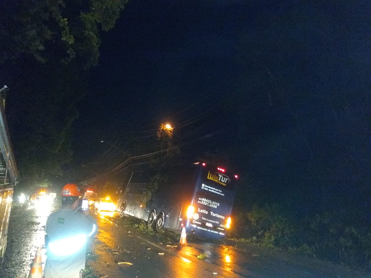 O acúmulo de chuva na região nas últimas 72h ultrapassou os 100 mm causando o risco de queda de barreiras no trecho. A preocupação foi confirmada no começo da manhã com escorregamento de terra nos KMs 73 e 79.