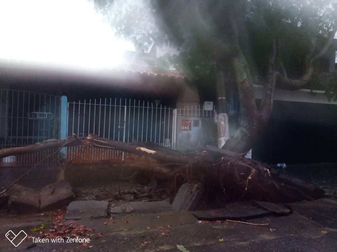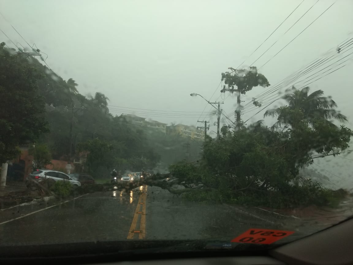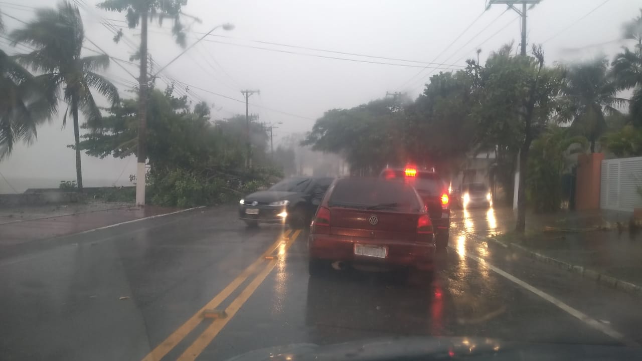 Também foram registradas no arquipélago quedas de árvores e uma rua ficou interditada na Vila. No mercado do Frade, no Perequê, todas as motocicletas que estavam no estacionamento foram para o chão.