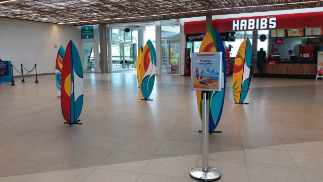 Dez pranchas pintadas a mão que foram inspiradas nas ondas e nas praias, obra do artista de surf art Tom Veiga estão expostas no shopping Serramar até dia 12 de maio, na praça principal. O artista plásico curitibano é reconhecido internacionalmente por suas pinturas.