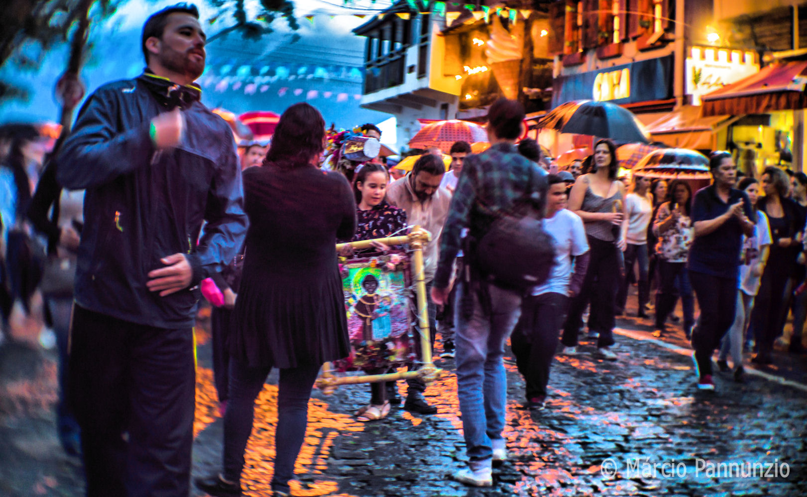 O encanto maior da devoção não repousa nessa violência estúpida contra o sossego da Vila e sim no caminhar respeitoso e sem gritaria dos que acompanham o pesado mastro de São Benedito sendo carregado pelas ruas até o seu destino final na Praça Alfredo Oliani.