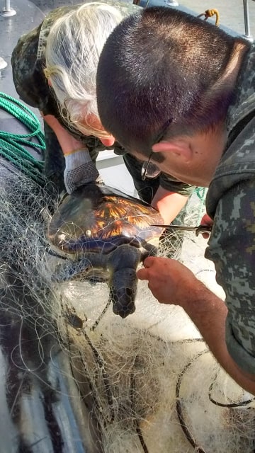 Tartaruga em extinção é resgatada de rede de pesca irregular