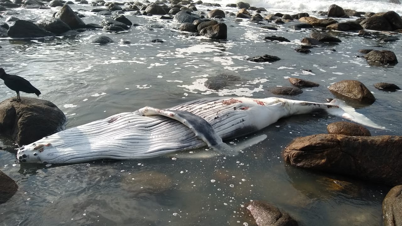 Um filhote de baleia jubarte fêmea foi encontrado morto no canto do Moreira, na Praia de Maresias, em São Sebastião, na tarde desta terça-feira (20). A causa da morte não foi identificada.