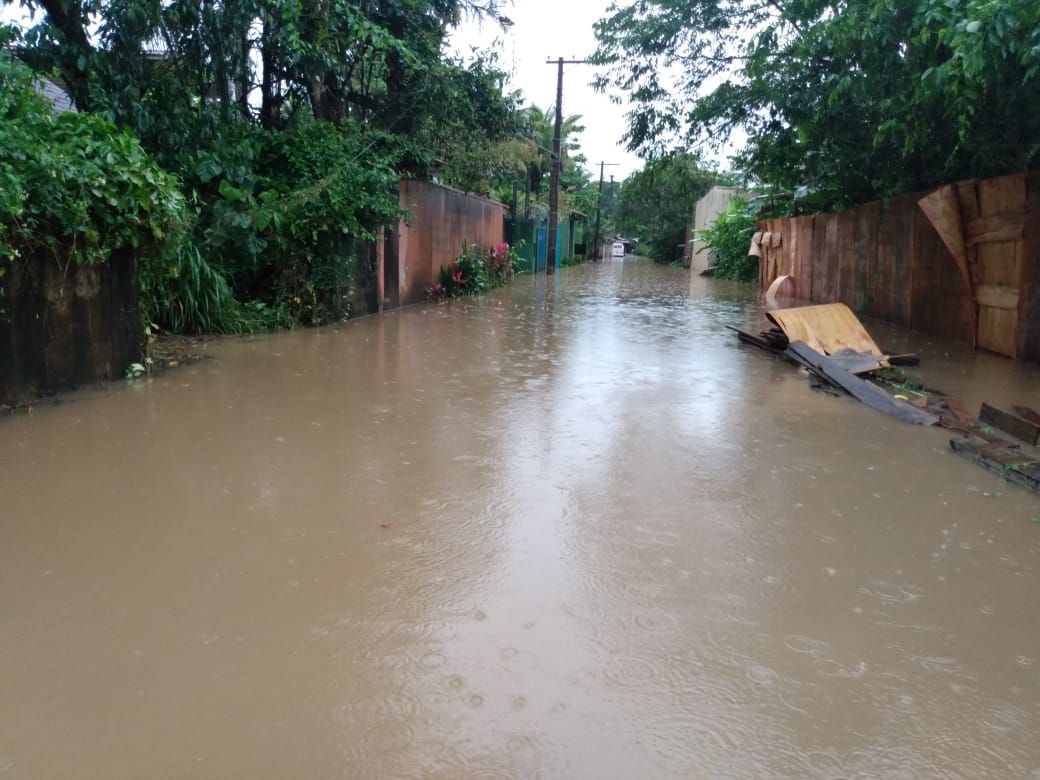 A forte chuva que caiu durante a madrugada desta segunda-feira (28) provocou uma série de alagamentos na Costa Sul de São Sebastião. Entretanto, não houve necessidade de remoção de nenhuma família. Ainda há água em alguns bairros.