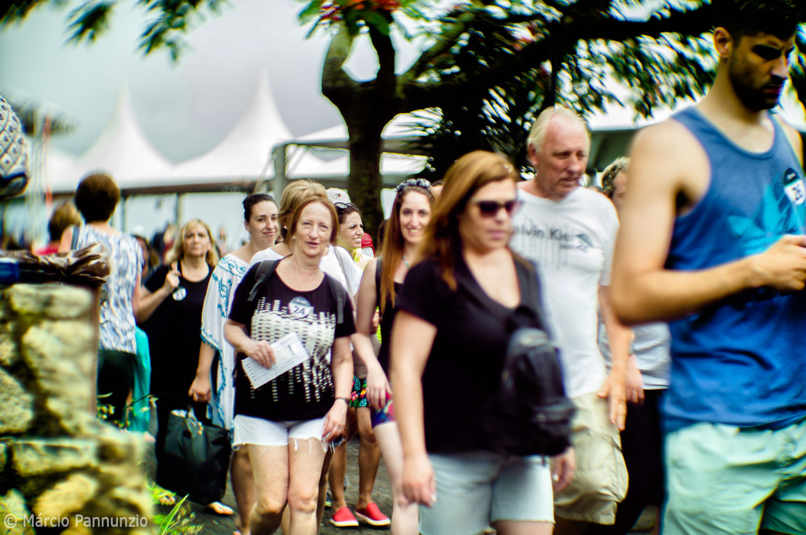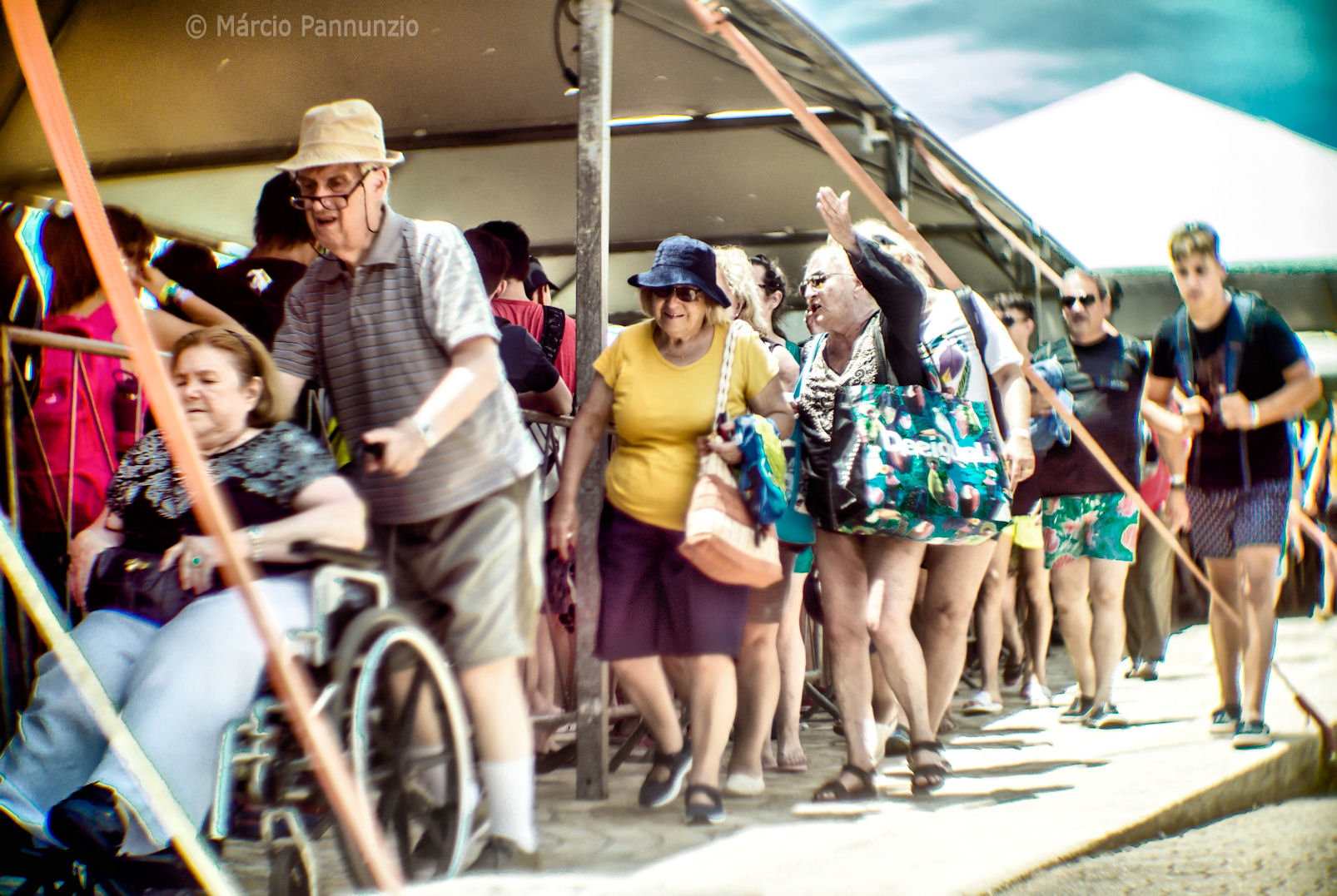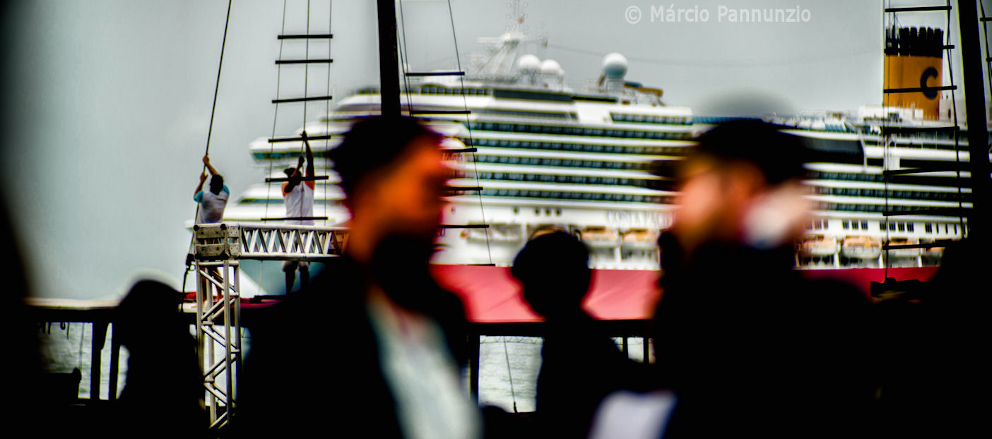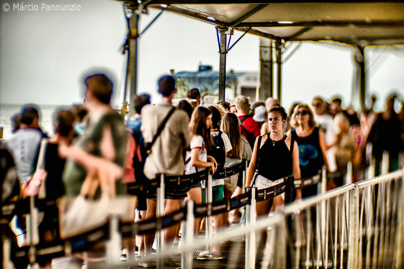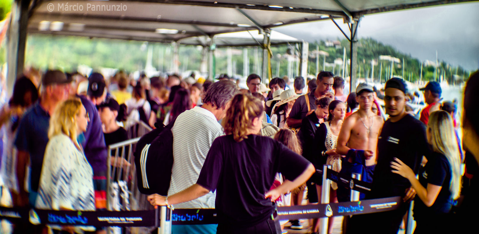 Na temporada de cruzeiros, estruturas parecidas são montadas na vila para evitar que seja caótico o desembarque dos passageiros. E oferecem um espetáculo bizarro: centenas de pessoas se acotovelando num calor tórrido sob tendas de lona, aprisionados em cercados de alumínio numa constrangedora situação que pouco fica a dever ao desembarque dos prisioneiros para adentrar nos campos de concentração nazistas.