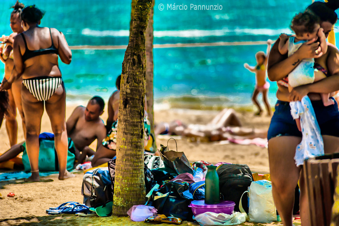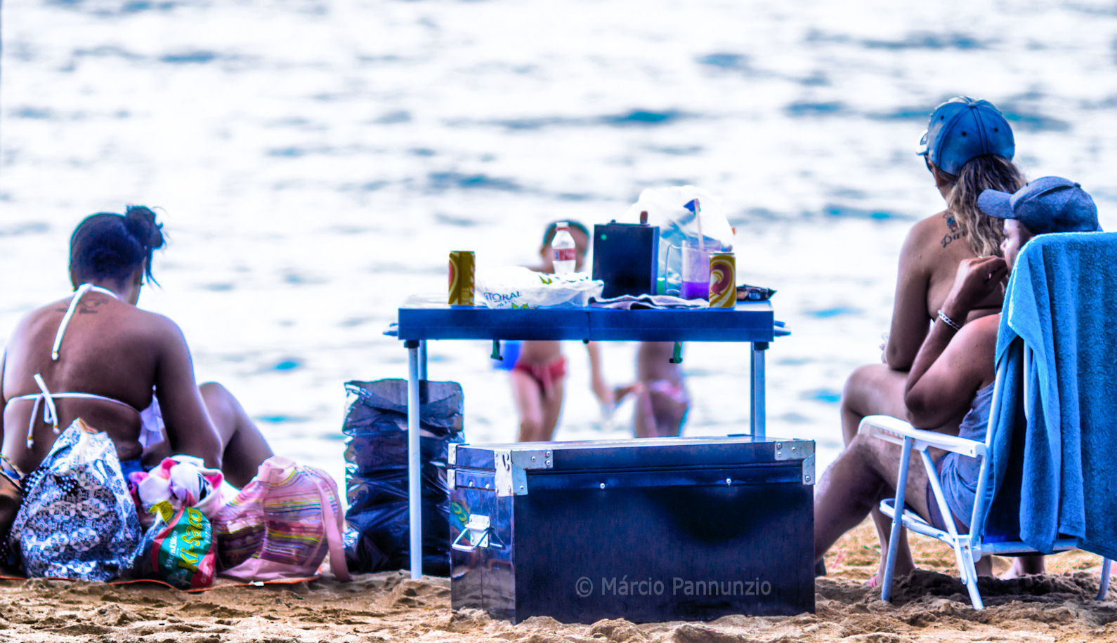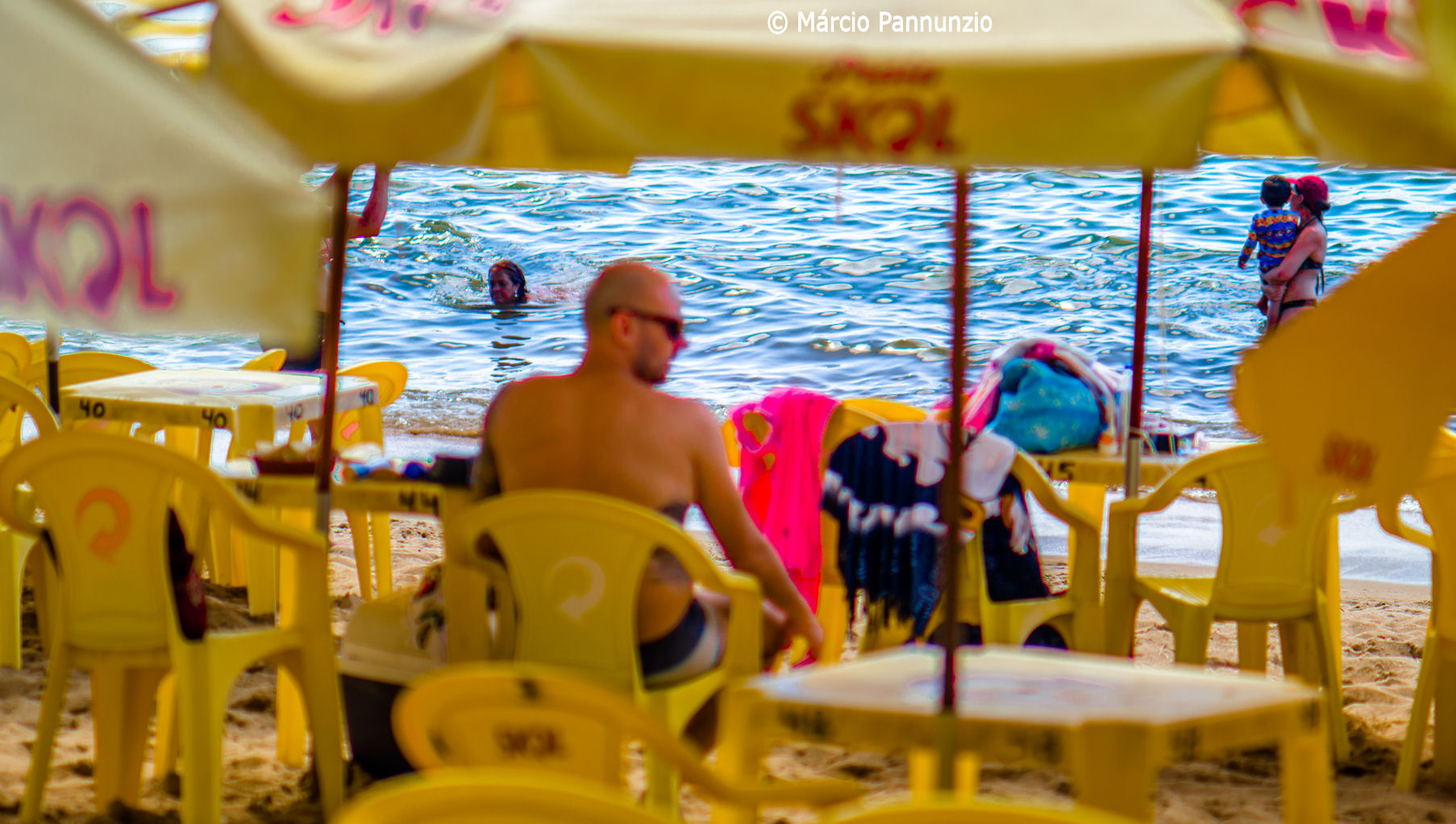 Além disso, cada uma dessas “salas” roda sua própria trilha sonora e disso resulta, que quem pela praia caminha precisa ter ouvidos surdos para não endoidar por causa da gritaria alucinada que reverbera o dia inteiro. Uma torre de babel tropical, onde se mistura funk, bossa nova, pagode, samba, sertanejo universitário e por aí vai que a lista nunca acaba como aquela anterior de mal feitos das administrações municipais passadas e da presente.
