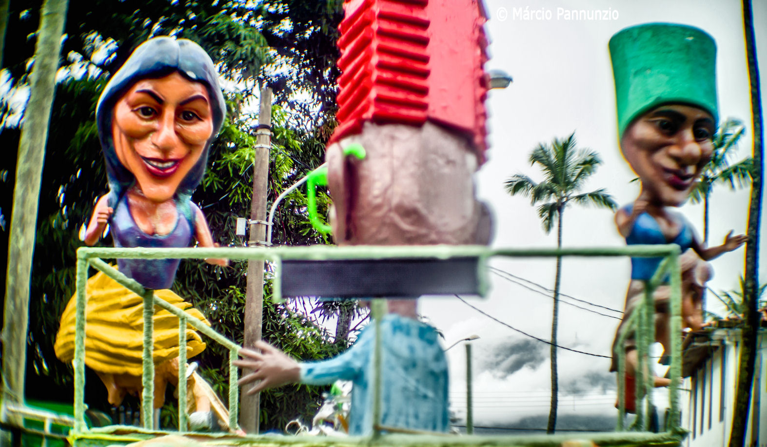 E há uma presença proeminente estacionada nas ruas do centro histórico. A dos carros alegóricos. Repletos de estátuas gigantescas. Em breve vão se ocultar em ruas de pouco ou nenhum trânsito, bem longe do olhar das pessoas.