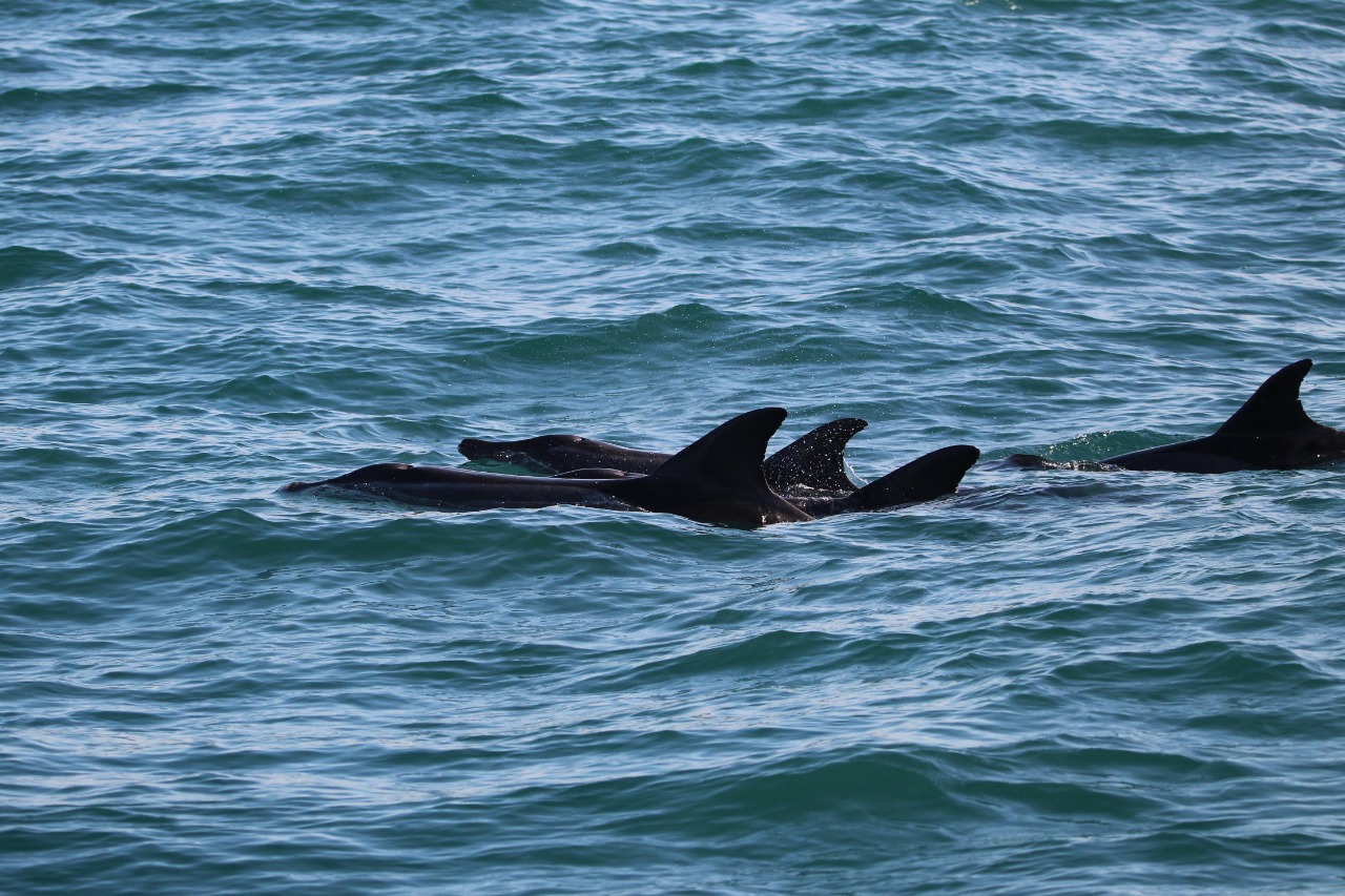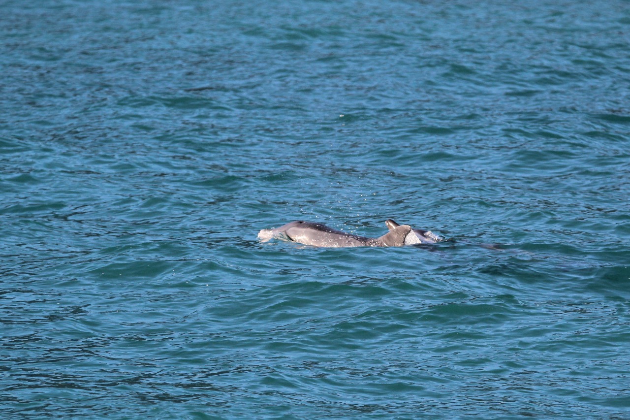 A baleia foi avistada na parte da manhã, próxima a Ponta Grossa, no nordeste da Ilha. Já o grupo de golfinhos da espécie Steno bredanensis, conhecido popularmente como “golfinhos de dentes rugosos”, foi flagrado à tarde, próxima a praia do Bonete, na região sul do arquipélago.