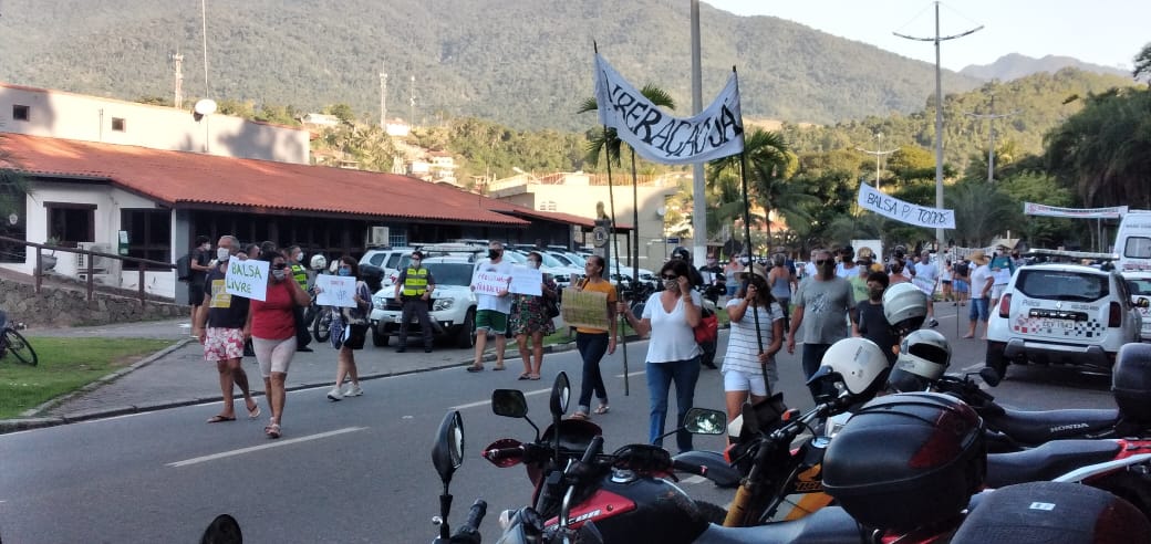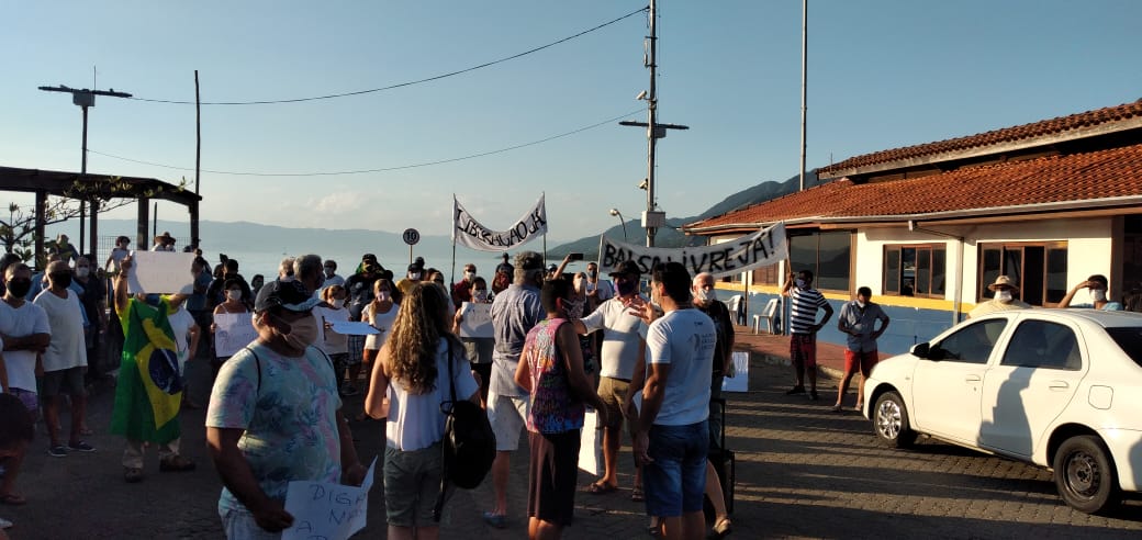 Munidas de faixas e cartazes e gritando “Balsa Livre Já” e ”Sou morador, não preciso de favor”, cerca de 250 pessoas cobraram a liberação do acesso que só é utilizado mediante solicitação junto à Secretaria de Turismo. A maior parte das reclamações é sobre o indeferimento das autorizações para quem precisa entrar ou sair de Ilhabela.