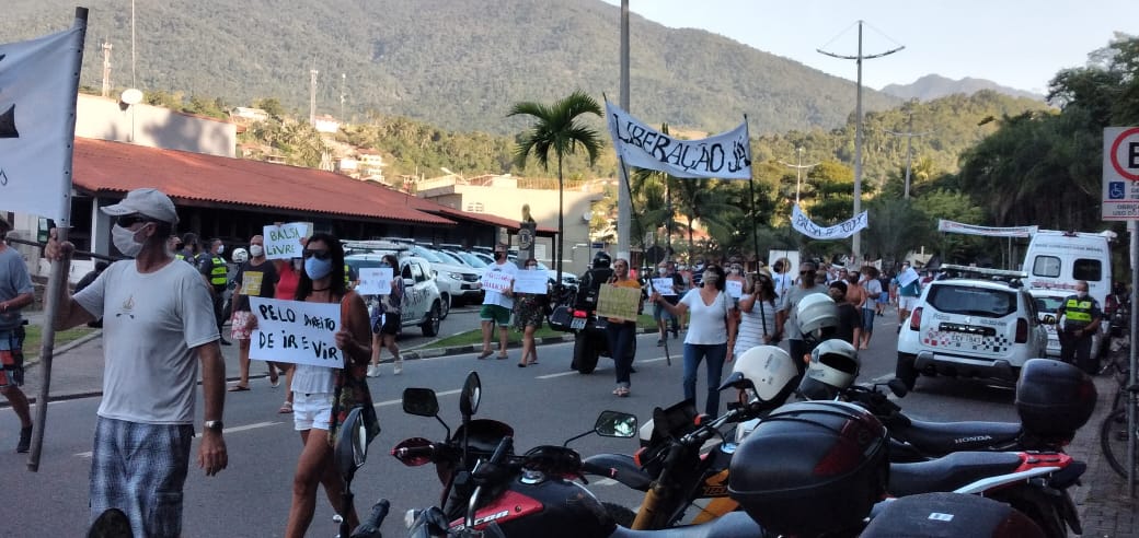 Um grupo de manifestantes formado por moradores e proprietários de casas de aluguel realizou, na tarde deste sábado (13), um protesto na área de embarque e desembarque da balsa, em Ilhabela. A ação foi contra restrições impostas pela prefeitura para a entrada no arquipélago como medida de combate ao coronavírus (Covid-19).