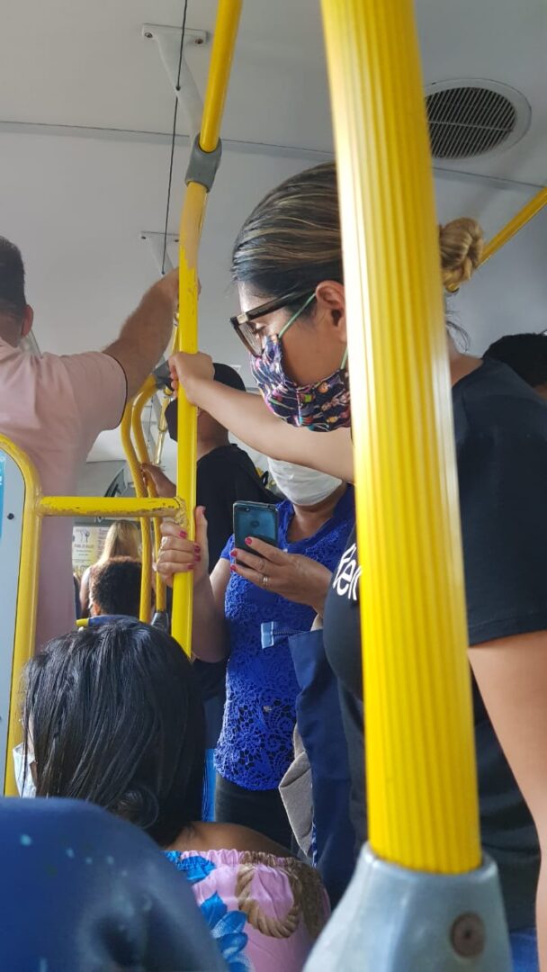 O que chama a atenção é que em tempos de pandemia do novo coronavírus (Covid-19), o comércio está em pleno funcionamento e os usuários continuam a reclamar que não houve aumento do número de ônibus, principalmente nos horários de pico.