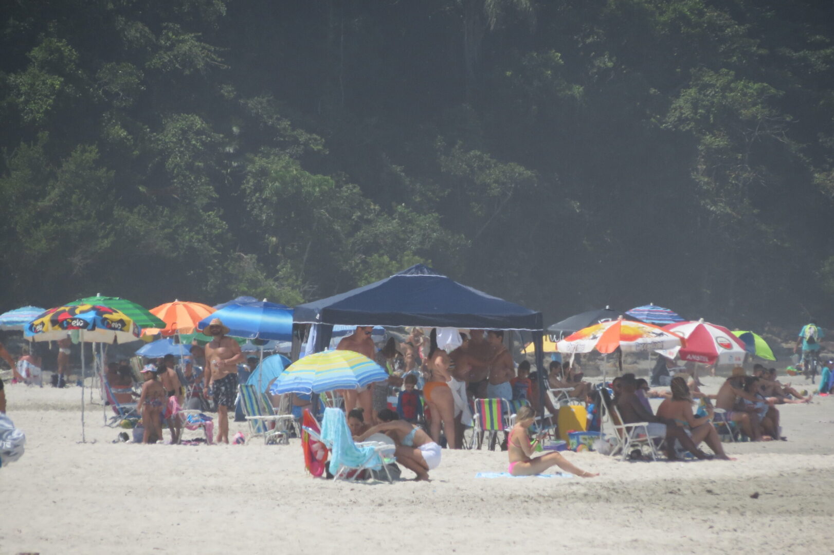 Máquinas, caminhões e viaturas chamaram a atenção dos banhistas na praia de Juquehy, neste sábado (20). A Prefeitura de São Sebastião diz que é uma operação para orientar sobre hábitos de prevenção ao coronavírus, porém a praia permaneceu lotada.