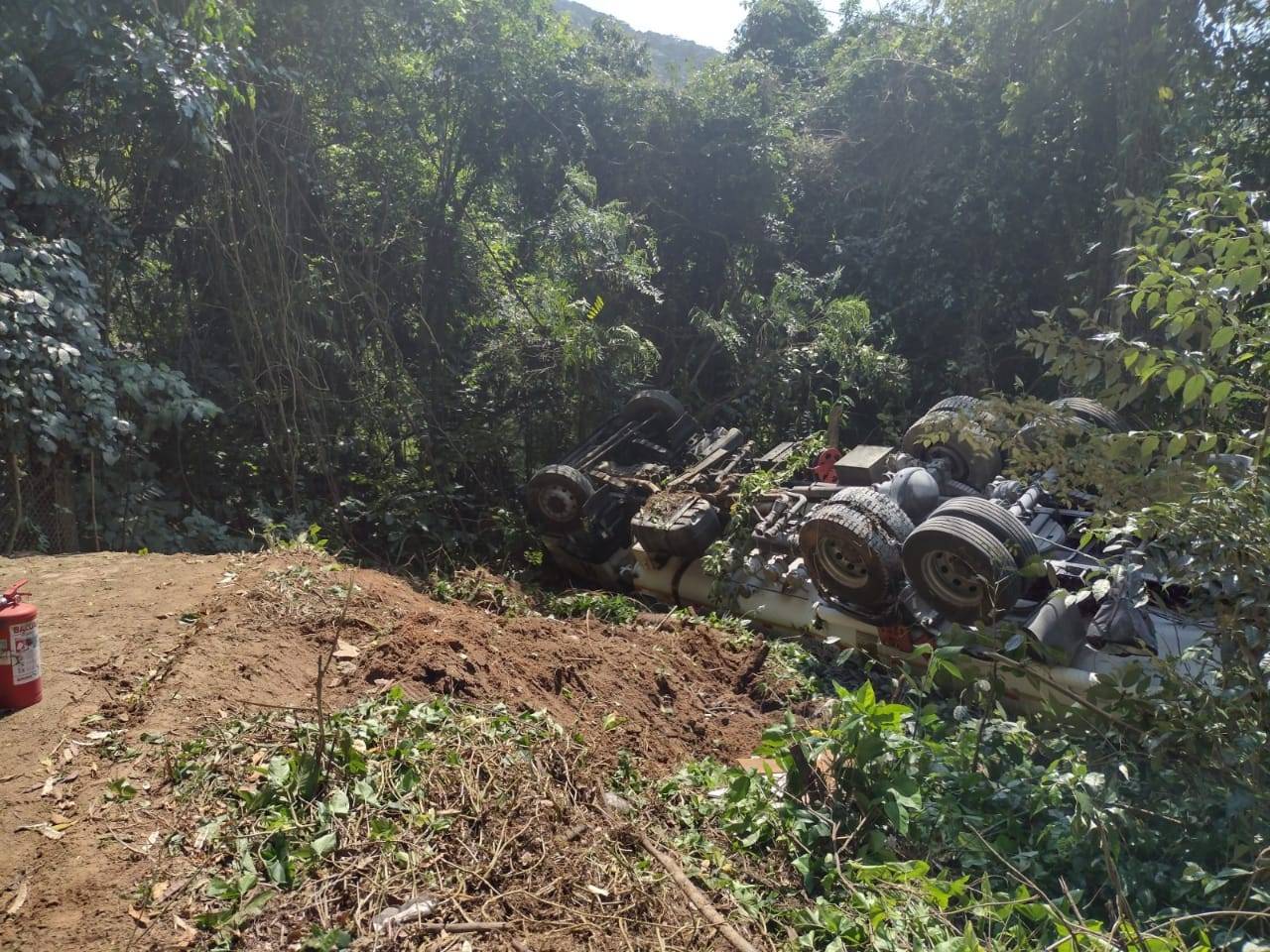 Caminhão de diesel tomba e Rio-Santos fica bloqueada por risco de explosão