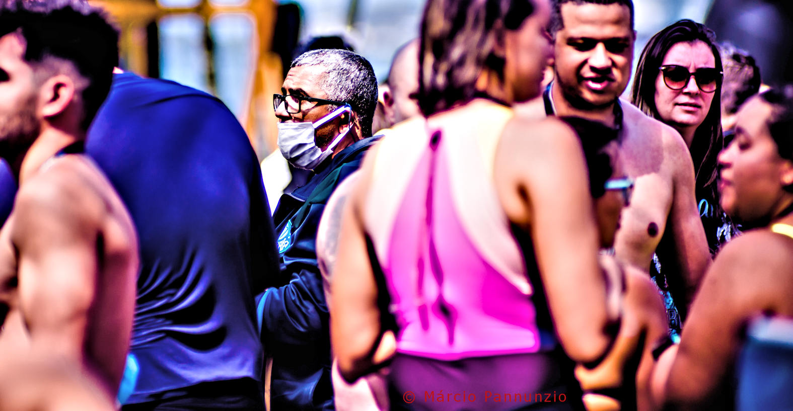 Já na primeira semana de novembro, evento esportivo de travessia a nado do canal de São Sebastião, juntou centenas de pessoas na praia do Engenho d’Água, bastante próximas umas das outras, sem usarem máscara de proteção facial.