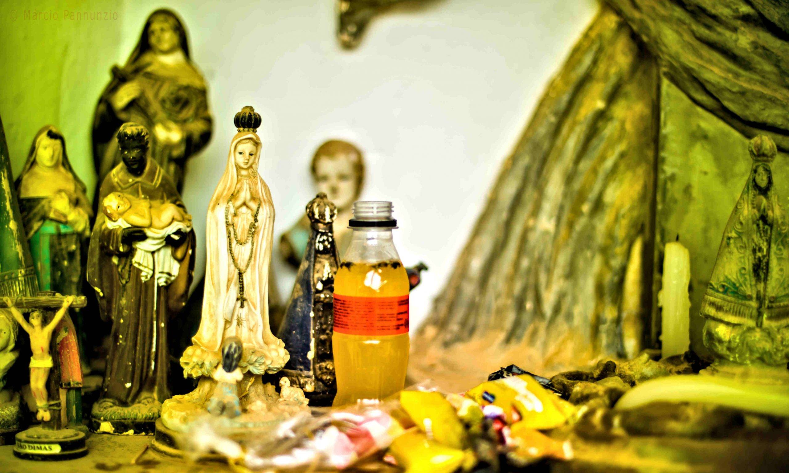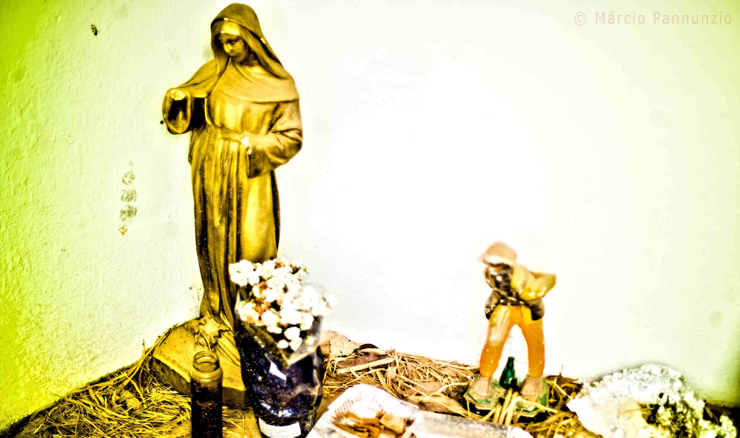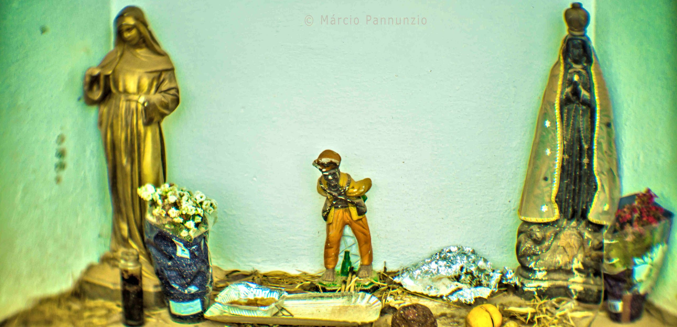 As fotos da coluna mostram a convivência pacífica de santos de diferentes devoções no espaço minúsculo duma capelinha inteiramente aberta para uma estradinha rural de trânsito quase deserto. Seria esse um cenário de paz e harmonia religiosa, não nos contassem diferente narração o relato de moradores próximos. O singelo local de democrático culto foi várias vezes, vandalizado; suas brancas paredes conspurcadas com bosta humana.