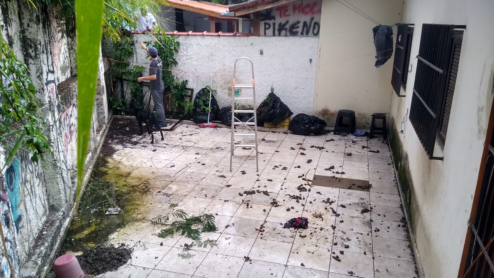 Com o apoio da equipe de zoonoses, os cachorros foram recolhidos para receber tratamento veterinário. Os vizinhos informaram que o filho da proprietária raramente aparece no local.