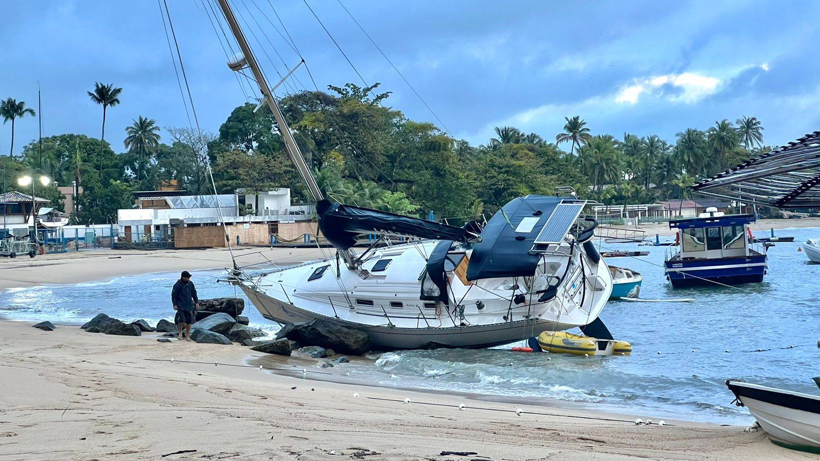 Em Ilhabela, o vendaval resultou em horas sem energia elétrica de norte a sul do município e pelo menos 15 ocorrências atendidas pela Defesa Civil: 12 quedas de árvores – uma interdidou a passagem ao sul da ilha na noite de ontem, um destelhamento de residência na Barra Velha e uma vistoria. A região sul segue com pontos sem luz. No Polo de Educação Integrada de Ilhabela (PEII), a cobertura da arquibancada da piscina cedeu durante a madrugada. A UBS da Barra Velha alta também sofreu avarias e alguns atendimentos foram direcionados para outra unidade. Houve ainda registro de acidentes com embarcações que encalharam – uma bateu em pedras no Saco da Capela. Um píer foi destruído na região sul (vídeo).