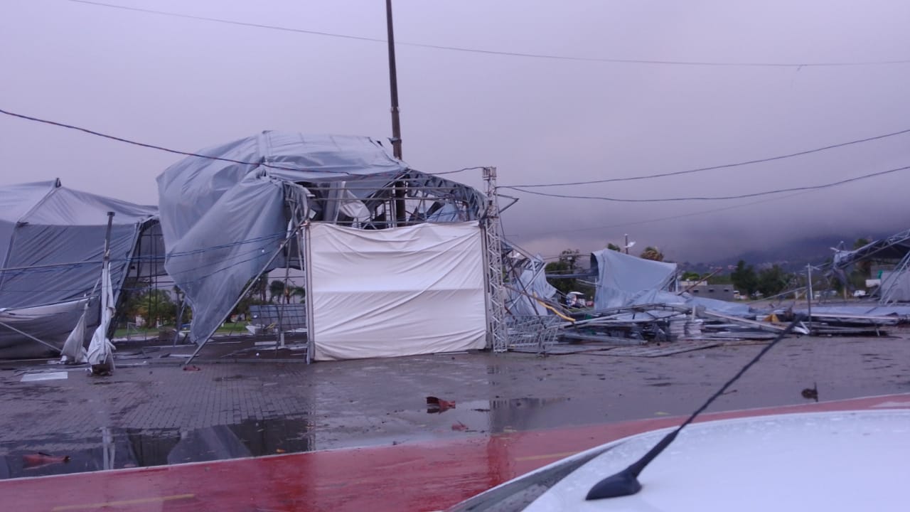 Foram contabilizados mais de 30 trechos interditados em ruas e rodovias, já liberados. No centro da cidade, duas árvores caíram, na madrugada, e impediram o trânsito, sendo uma menor sobre um carro estacionado e sem ocupantes. Houve ainda sete quedas de árvores sobre imóveis, sem nenhuma pessoa machucada. Uma árvore atingiu um ônibus em Toque Toque Grande, sem vítimas; diversas repartições públicas sofreram prejuízos (vídeo), entre eles os prédios da rodoviária, de unidade de Saúde e da prefeitura. O galpão de eventos da Rua da Praia caiu, o que cancelou a realização do Festival da Cultura Japonesa, que iniciaria na sexta-feira (12). O convento Nossa Senhora do Amparo, patrimônio histórico e cultural do município, no bairro de São Francisco, também foi atingido.