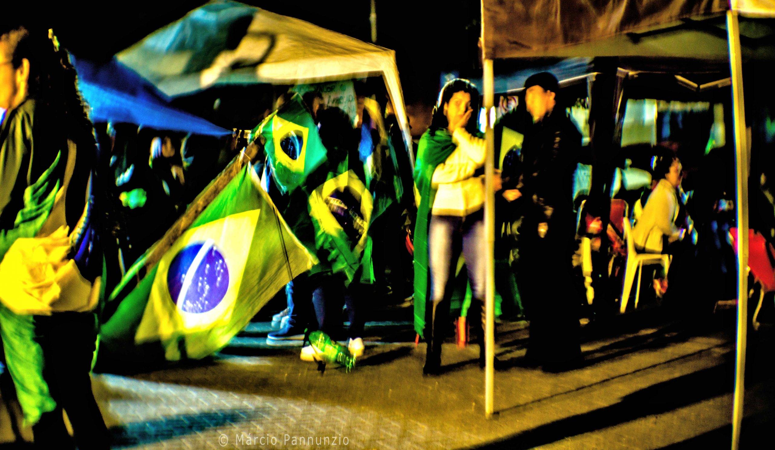À noite, havia iluminação tão potente que muito pouca sombra vivia. Faixas pediam intervenção federal, faixas imploravam apoio do exército; bandeiras brasileiras tremulavam histéricas e no meio da confusão de carnes bem lavadas e alvas, tinha umas de gente que já viveu na infância a ditadura do estado novo e na juventude a ditadura militar. E ainda assim, estavam lá, clamando por ela, a ditadura que por dura sendo de direita ou de esquerda, perseguiu, prendeu, torturou, assassinou, exilou, afrontou, achincalhou, emporcalhou, aviltou e haja adjetivo depreciativo pra tanta infâmia feita.