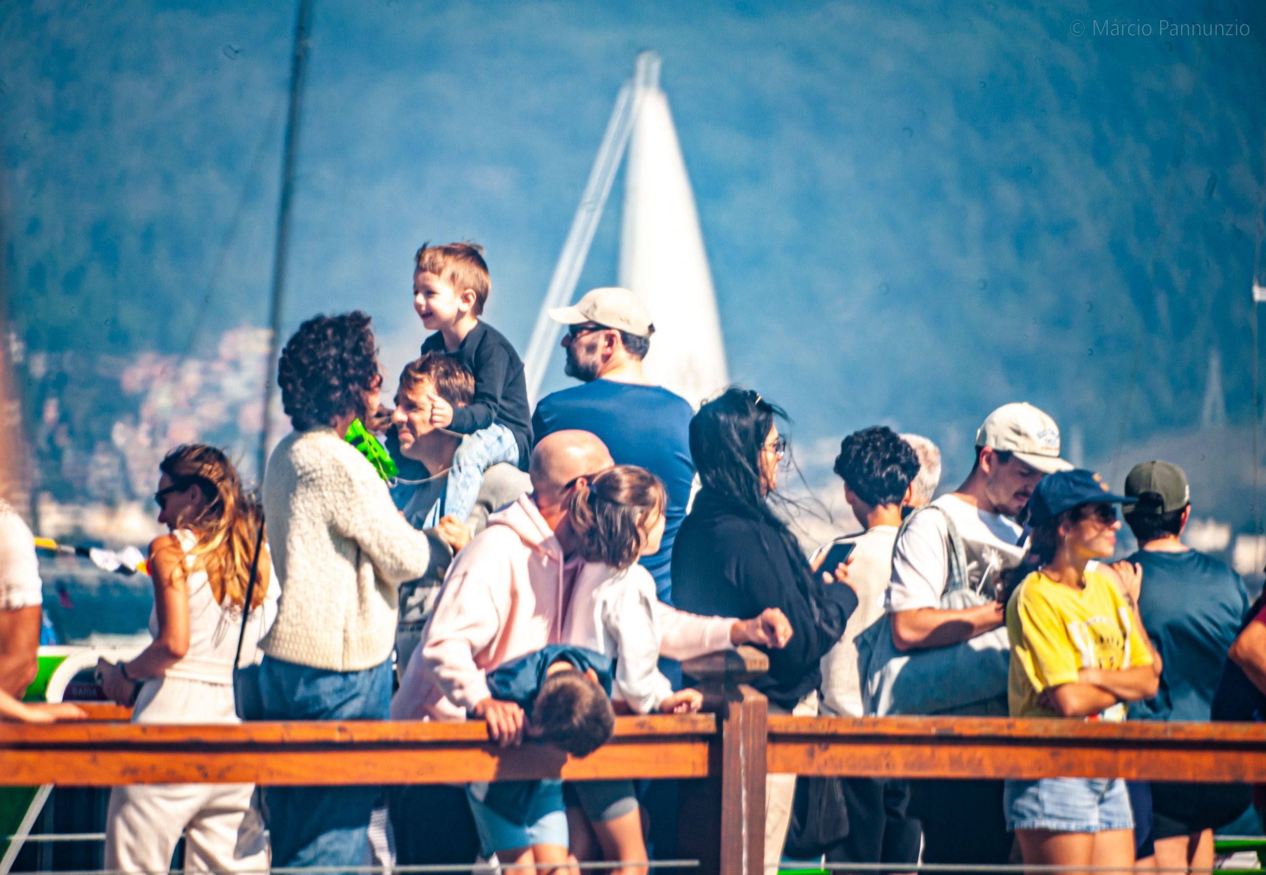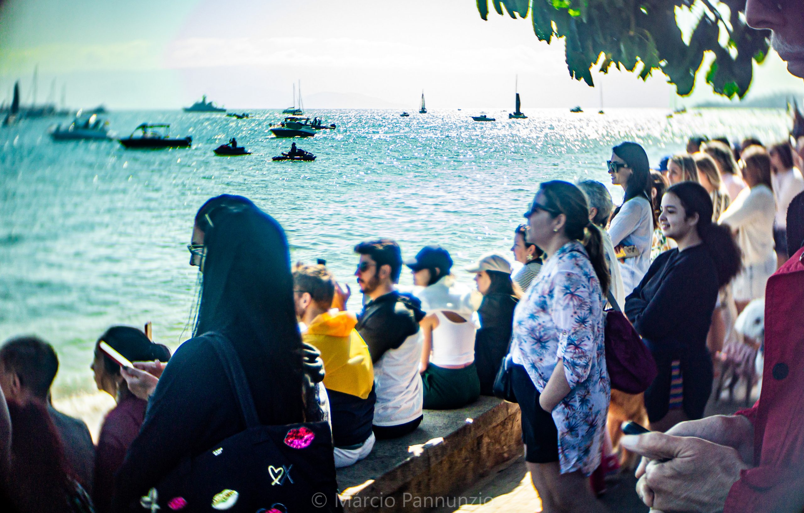 As pessoas se aglomeram multidão em busca da melhor vista e no meio da massa quase compacta de gente de todas as idades, credos, raças e condição financeira, inúmeras mãos elevam em desespero celulares no entusiasmo de eternizarem o bailado dos barcos. E em harmonia com a coreografia náutica de encantar o olhar, essa admiração calorosa do público encena uma festa com poder de afugentar o frio do inverno por um momento revivendo o verão.