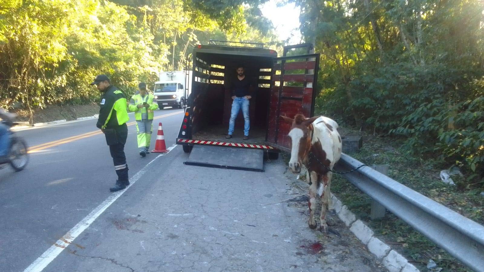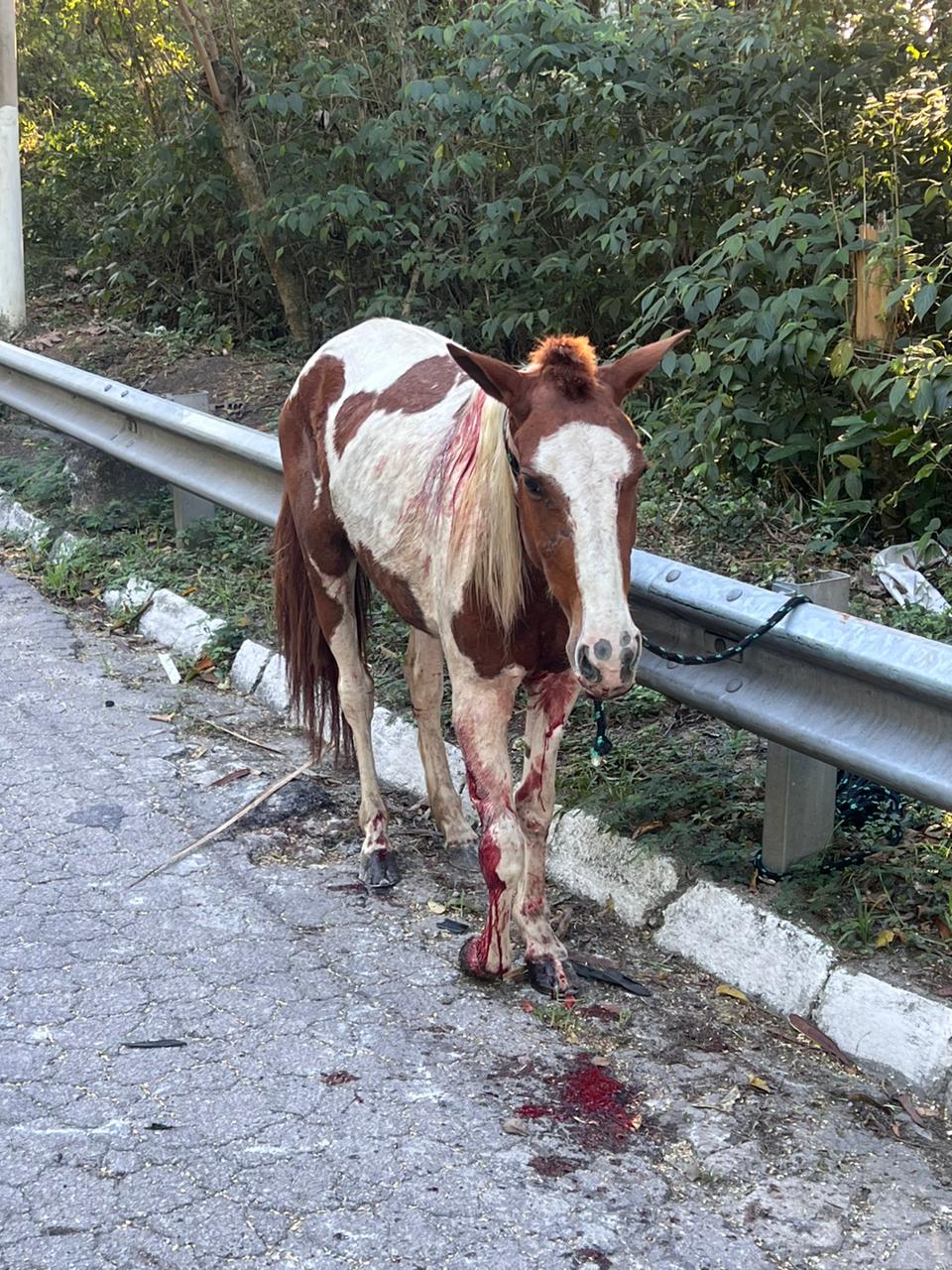 Um carro que transitava pela rodovia SP-55, no trecho da Serra das Cigarras, altura do km 117, em São Sebastião, atropelou um cavalo, na manhã desta terça-feira (6).