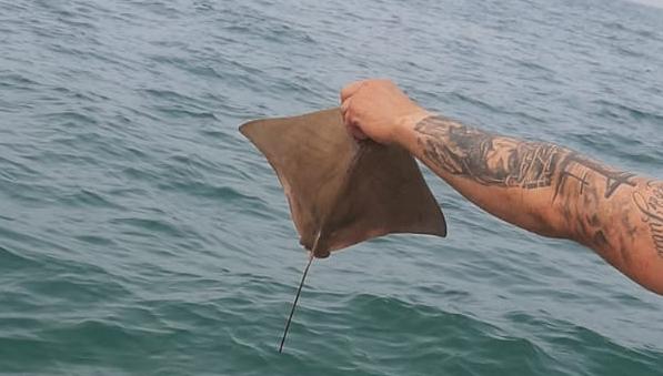 Raia ameaçada de extinção é resgatada de rede de pesca irregular em Caraguatatuba