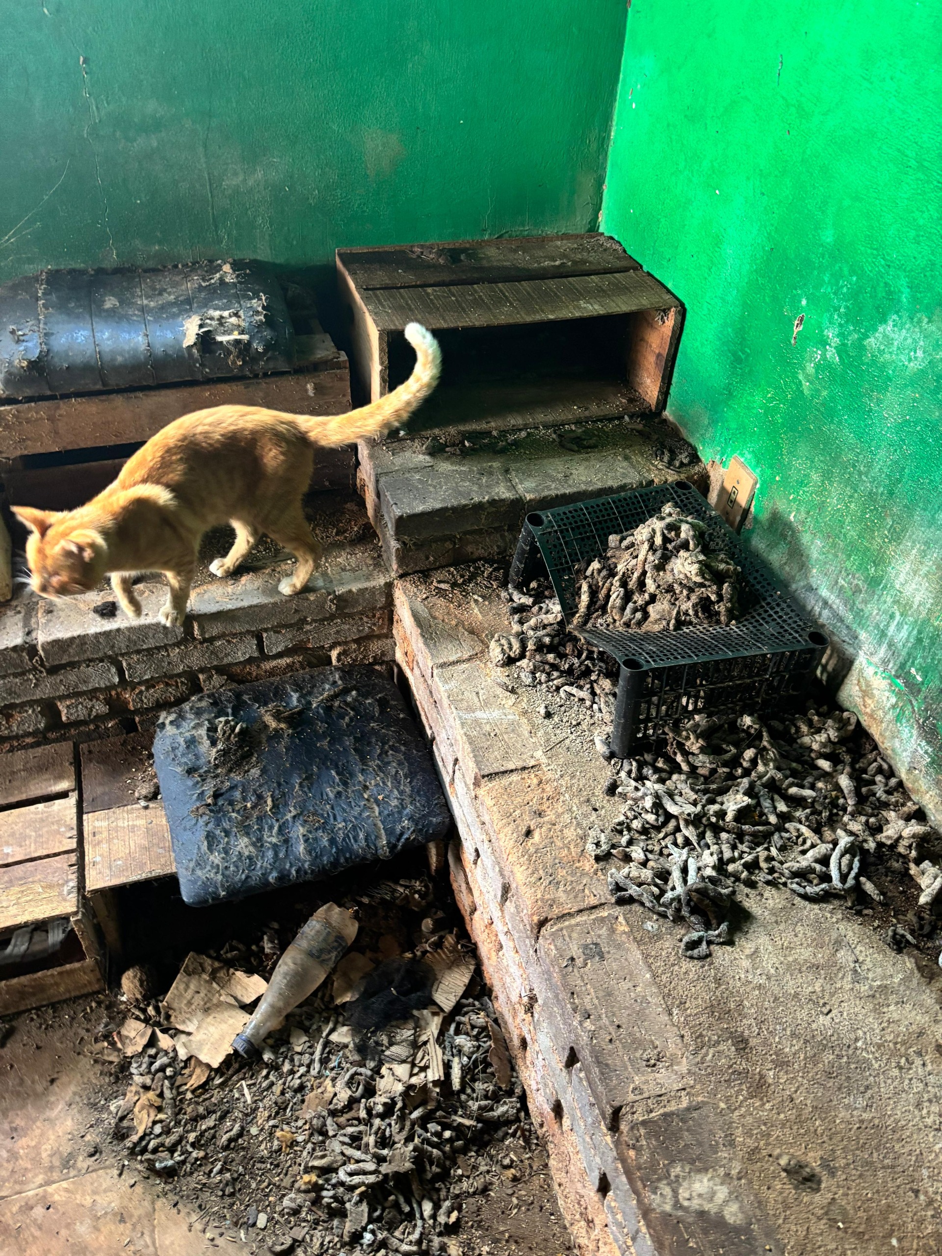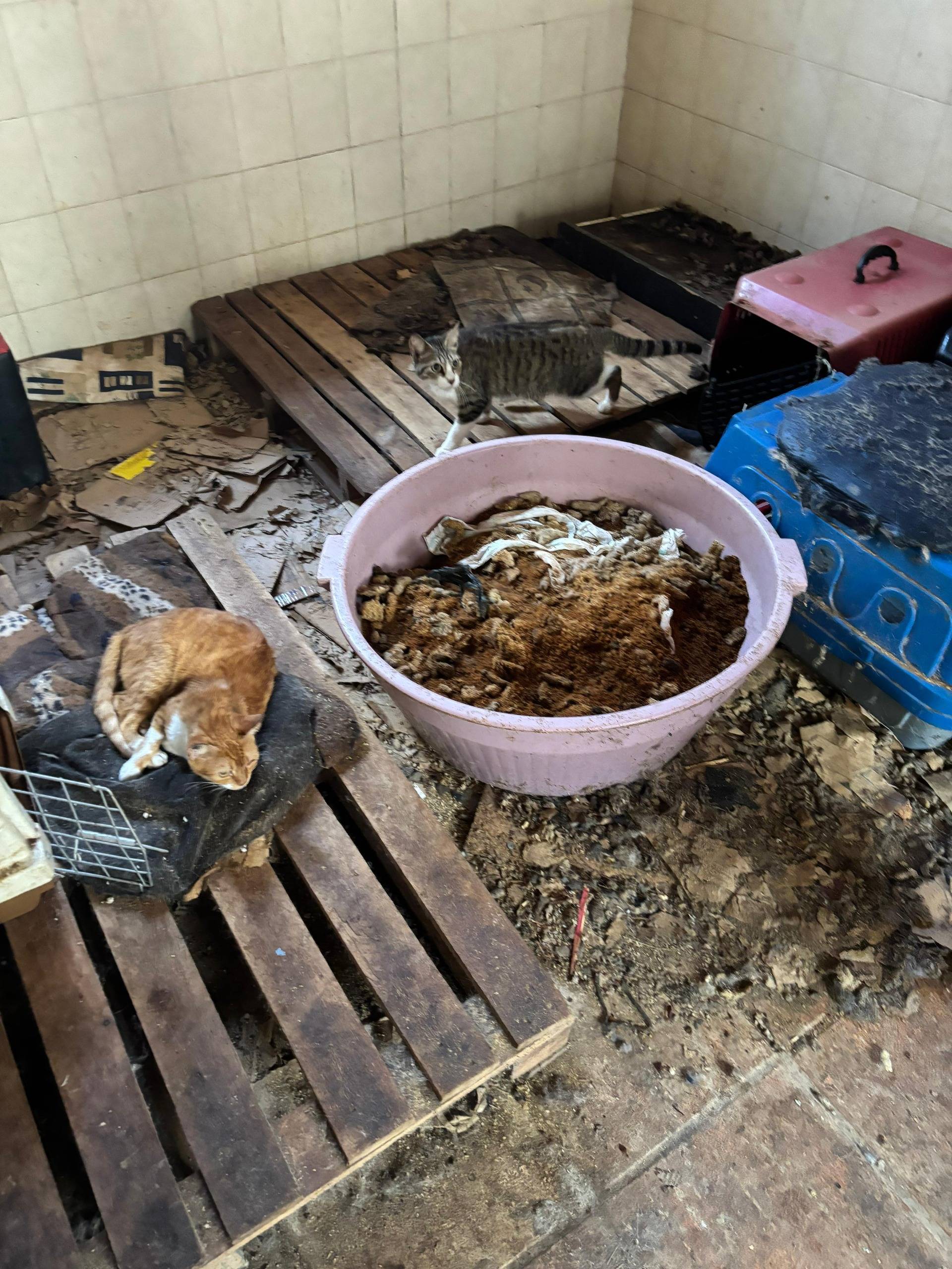 Dentro da casa, os policiais contabilizaram 33 gatos adultos, também sem raça definida, alojados juntos e sem cuidados sanitários. Além da sujeira, a residência não possui fornecimento regular de água. A equipe observou que, embora os felinos parecessem fisicamente íntegros, a situação geral indicava negligência, com acesso limitado a água e ausência de alimentos.