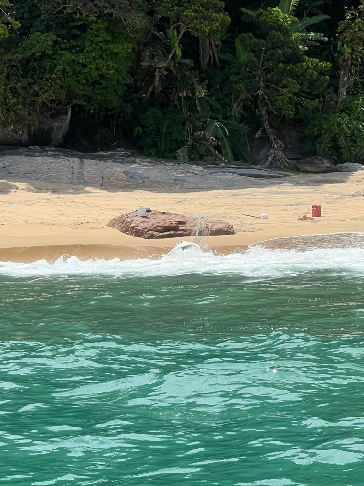 Ao chegar de lancha, a equipe encontrou um homem, de 26 anos, e uma mulher, de 59, que conseguiram nadar até a faixa arenosa da praia, ilesos e sem sinais de afogamento. As duas vítimas foram embarcadas e levadas em segurança. Posteriormente, a pequena embarcação também foi resgatada com sucesso ela equipe.
