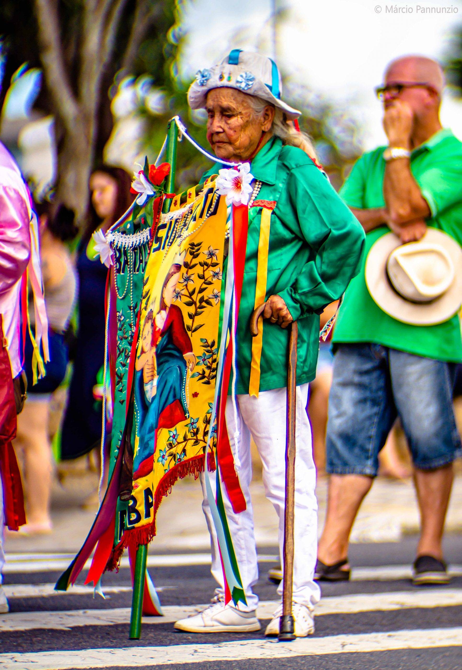 A congada de Atibaia. Passando pela cidade, estava acontecendo a sua congada. Marcando diferença em relação a de Ilhabela, existem congadas de quatro cores e mulheres congueiras. Há mais instrumentos musicais.
