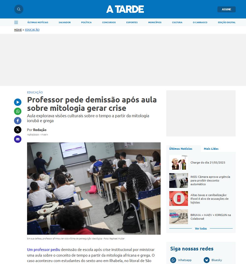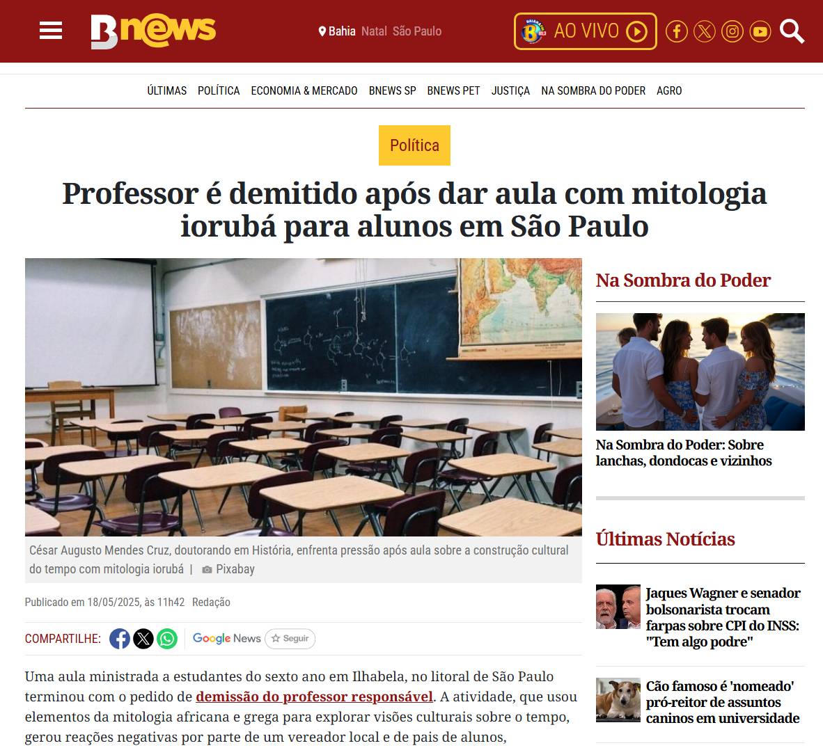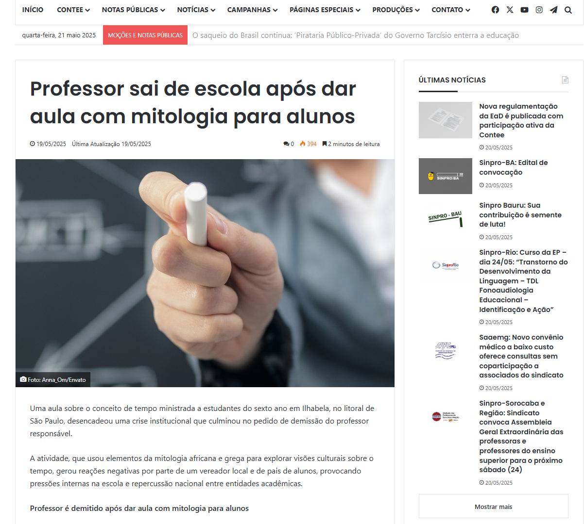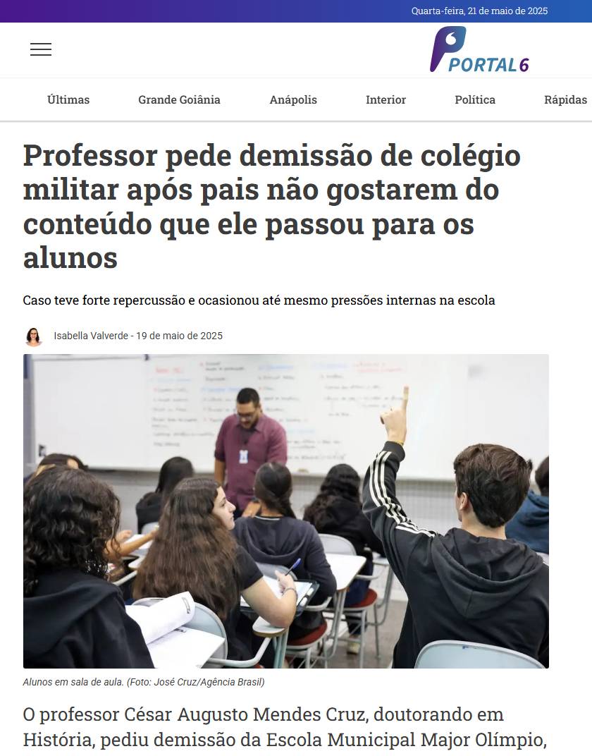 “É minha obrigação denunciar o assédio para que não aconteça comigo e nem com qualquer outro. Então, quero dizer para as pessoas que estão me assistindo, se você sofrer o assédio, cria coragem, busca a rede de apoio pra denunciá-lo, porque assédio só cessa quando ganha publicidade; senão, ele vai num crescente. Como eu já disse, nessa escola eu sou o quarto ou quinto professor assediado e já sou assediado pela segunda vez por essa rede de ensino. Então se eu ficar calado, o assédio não vai cessar; muito pelo contrário, ele vai piorar, ele vai prejudicar os meus estudantes. Porque um professor que não tem confiança no lugar de trabalho dele, ele não vai exercer bem as suas funções e os alunos vão deixar de aprender. E aí, o prejuízo pedagógico para esses estudantes é muito maior, né. Então, só eu estou falando porque só eu tenho a legitimidade agora nesse momento para falar. Eu não tenho rabo preso com ninguém. Eu não tenho cargo comissionado. Eu não dependo de cargos políticos para a minha subsistência. Eu estou aqui representando um direito fundamental do povo brasileiro que é a educação e a educação de qualidade. Eu que fui professor em escola privada, que já dei aula para filho de embaixador, já dei aula para pessoas de muito dinheiro, para CEOs, decidi colocar o conhecimento que tenho, que foi financiado pelo povo na universidade pública a serviço desse mesmo povo. Mas infelizmente, eu estou encontrando pessoas de pouco caráter e pouco conhecimento nos cargos de gestão que estão inviabilizando o meu trabalho e estão inviabilizando o direito dos estudantes de terem acesso a ele.”