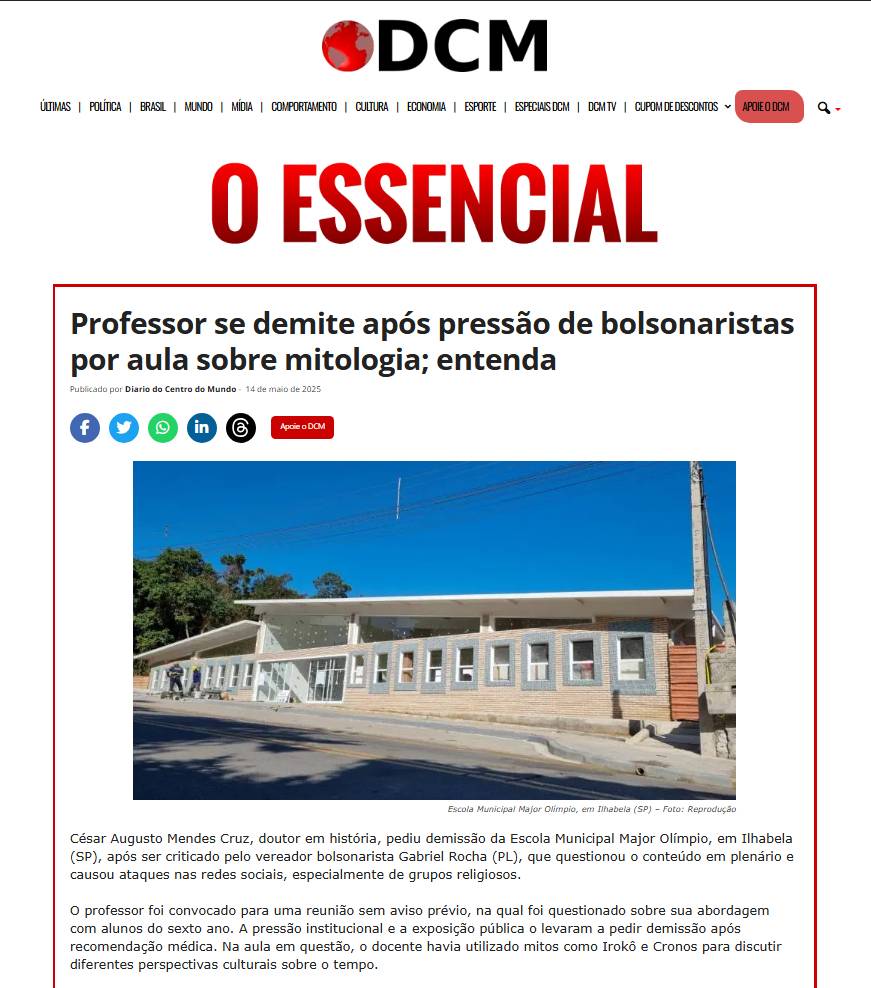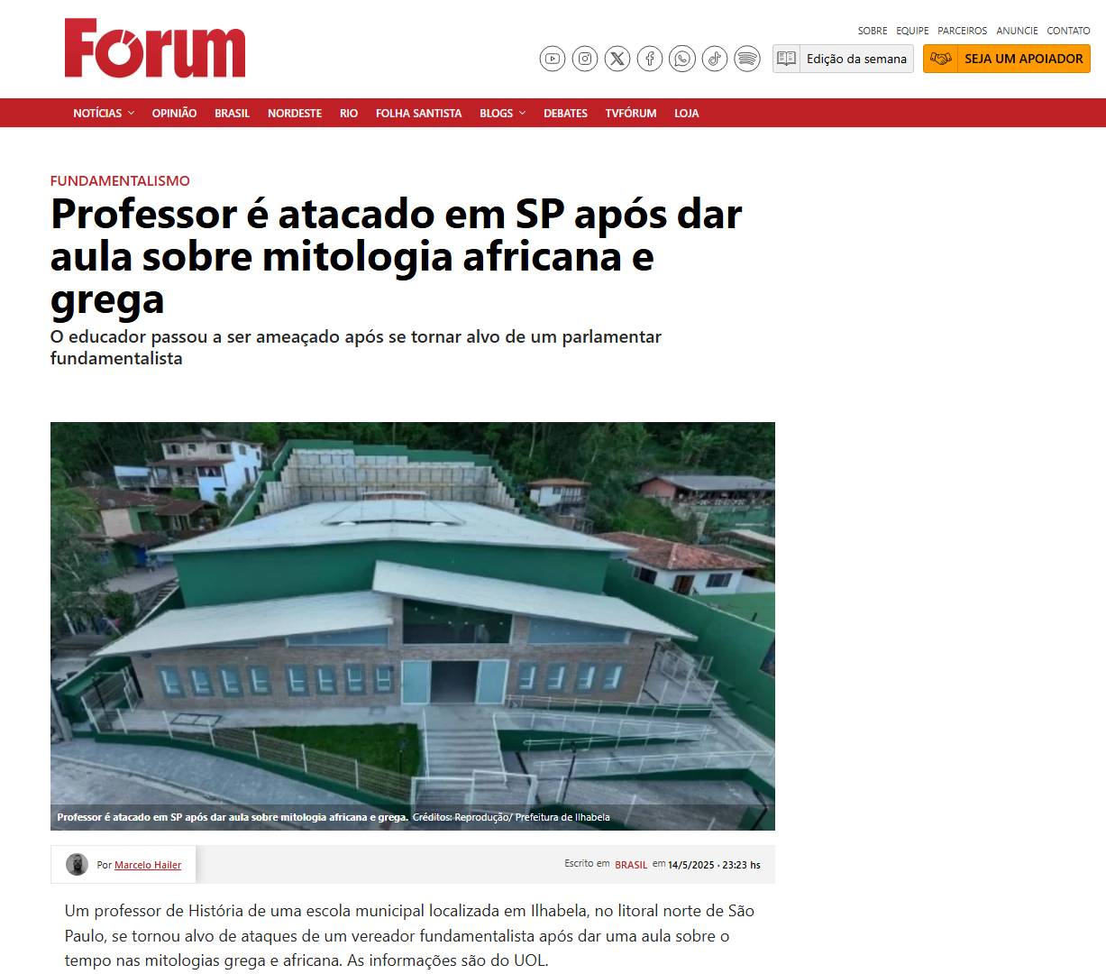 Retomando a fala do Cesar. “Professor de ciências que foi ameaçado, né? Chegou a ter que ser afastado porque tinha pai ameaçando agredi-lo fisicamente, inclusive também e naquela ocasião instigados por uma vereadora. Então, o aparecimento do vereador Gabriel Rocha nessa história não é fortuito. Infelizmente não é a primeira vez. Nós tivemos casos já de outros vereadores desse escopo ideológico atacando professores aqui na Ilhabela, né? Não aparecem para resolver os problemas estruturais, mas aparecem para nos colocar na fogueira.”