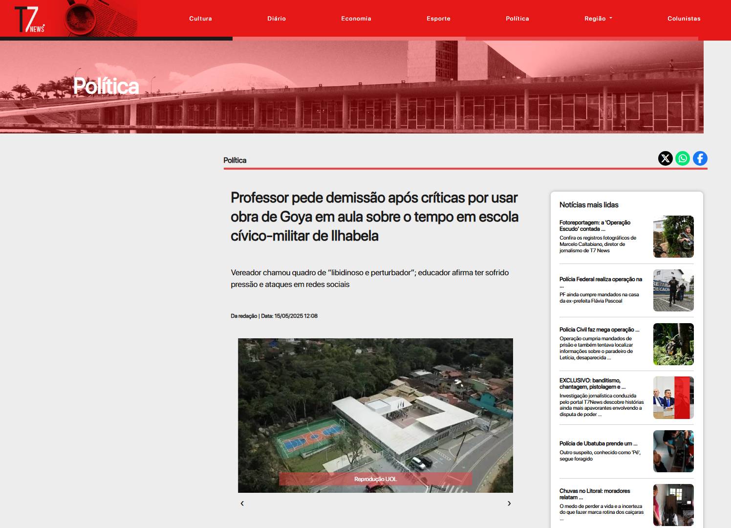 Nas suas palavras, “então, para algumas famílias, vem essa ideia de que uma escola militarizada com pessoas que seriam da PM ou de qualquer outra instância militar é mais segura, né? Contém a indisciplina. Não é o que eu vi. Não é, não é o que eu vi. O que eu vi foi perseguição. O que eu vi foi poucas famílias se arrogando ao direito de privatizar a educação que é pública e é financiada com os impostos de todos nós. O que eu vi foi um elitismo de querer uma educação segura e próspera pro seu filho, excluindo o filho do outro que vai pra escola vizinha. E o que eu vi da disciplina, é querer minar a capacidade criadora desses estudantes para disciplinarizar e docilizar corpos que antes de pensarem por si mesmos vão obedecer, né? Obedecer as ordens sem questionar, sabendo que há uma punição severa caso não obedeçam, não é? Então esse é o investimento.”