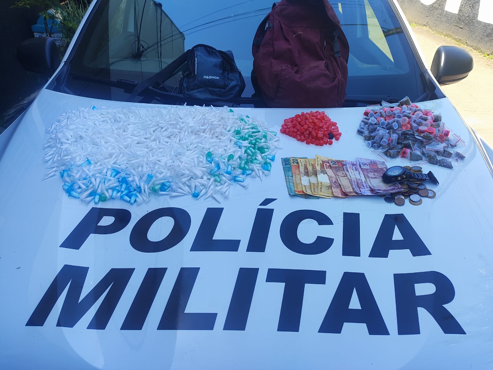 No total, foram recolhidos 2.159 pinos de cocaína, 180 porções de maconha, 177 pedras de crack, bem como R$ 260,30 em espécie, um relógio de pulso e duas bolsas utilizadas para transporte.
