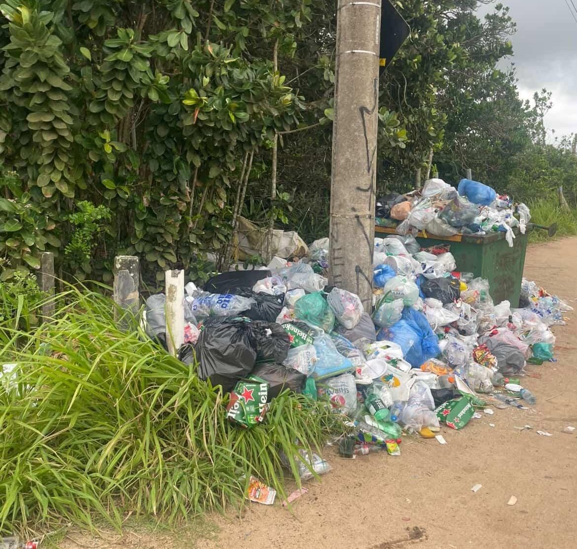 Imagens enviadas à redação e relatos da comunidade local descrevem um cenário de insalubridade. Com os coletores lotados, sacolas plásticas, garrafas PET e até fraldas sujas foram deixadas na grama e na areia. ainda segundo a comunidade, a decomposição de restos de comida sob o calor do verão tem atraído vetores de doenças, como baratas e ratos.