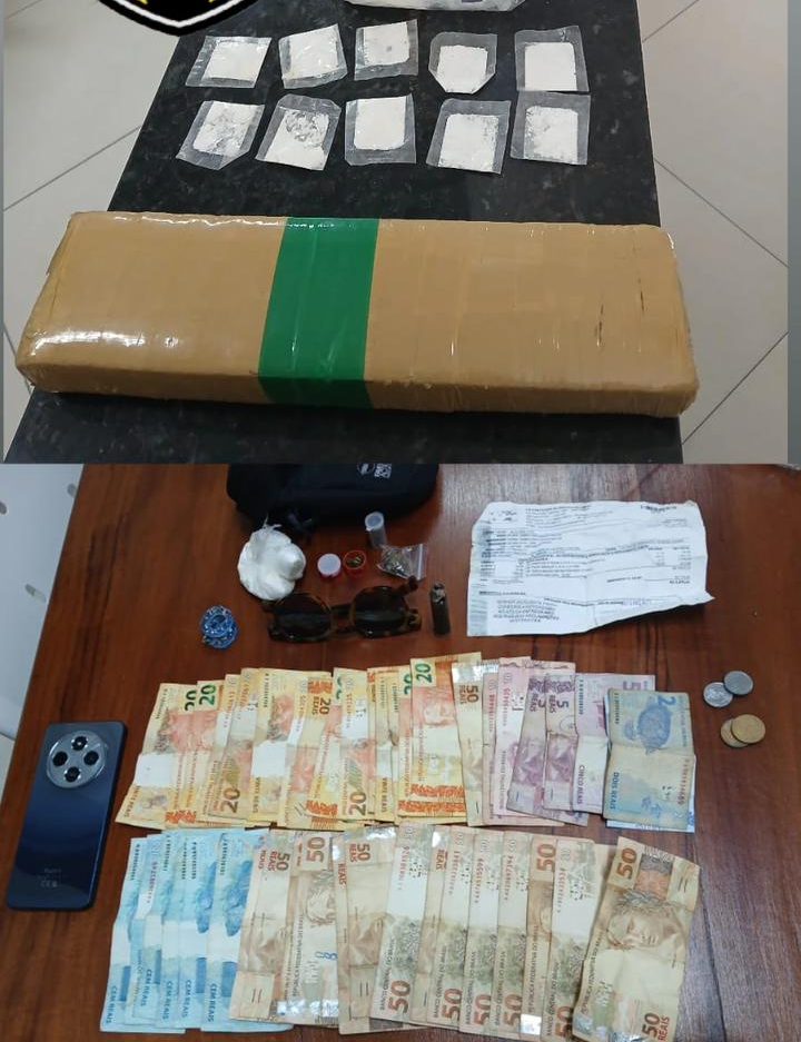 Na revista, foram encontrados ziplocks de maconha. Uma varredura no perímetro revelou mais drogas escondidas nas imediações, idênticas às que estavam com o suspeito. O homem admitiu que realizava a venda recorrente no local e também foi preso, sendo apreendidas porções de maconha, cocaína e dinheiro.