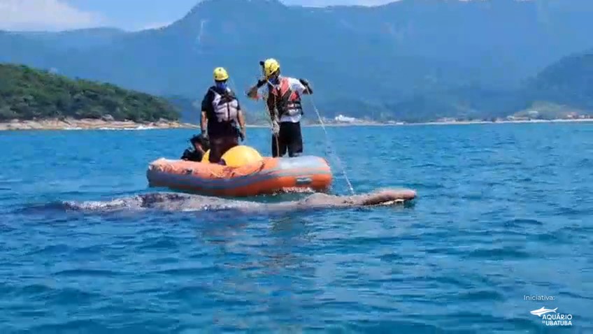 Veja mais Equipes removem rede de baleia em Ubatuba; estado de saúde do animal é críticoBaleia-jubarte debilitada mobiliza equipes de monitoramento em Ubatuba