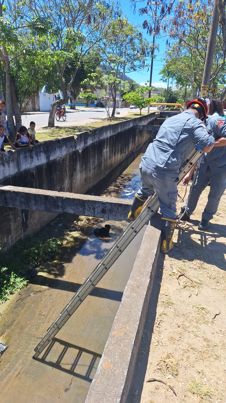 Bombeiros resgatam cão cego que caiu em canal de drenagem